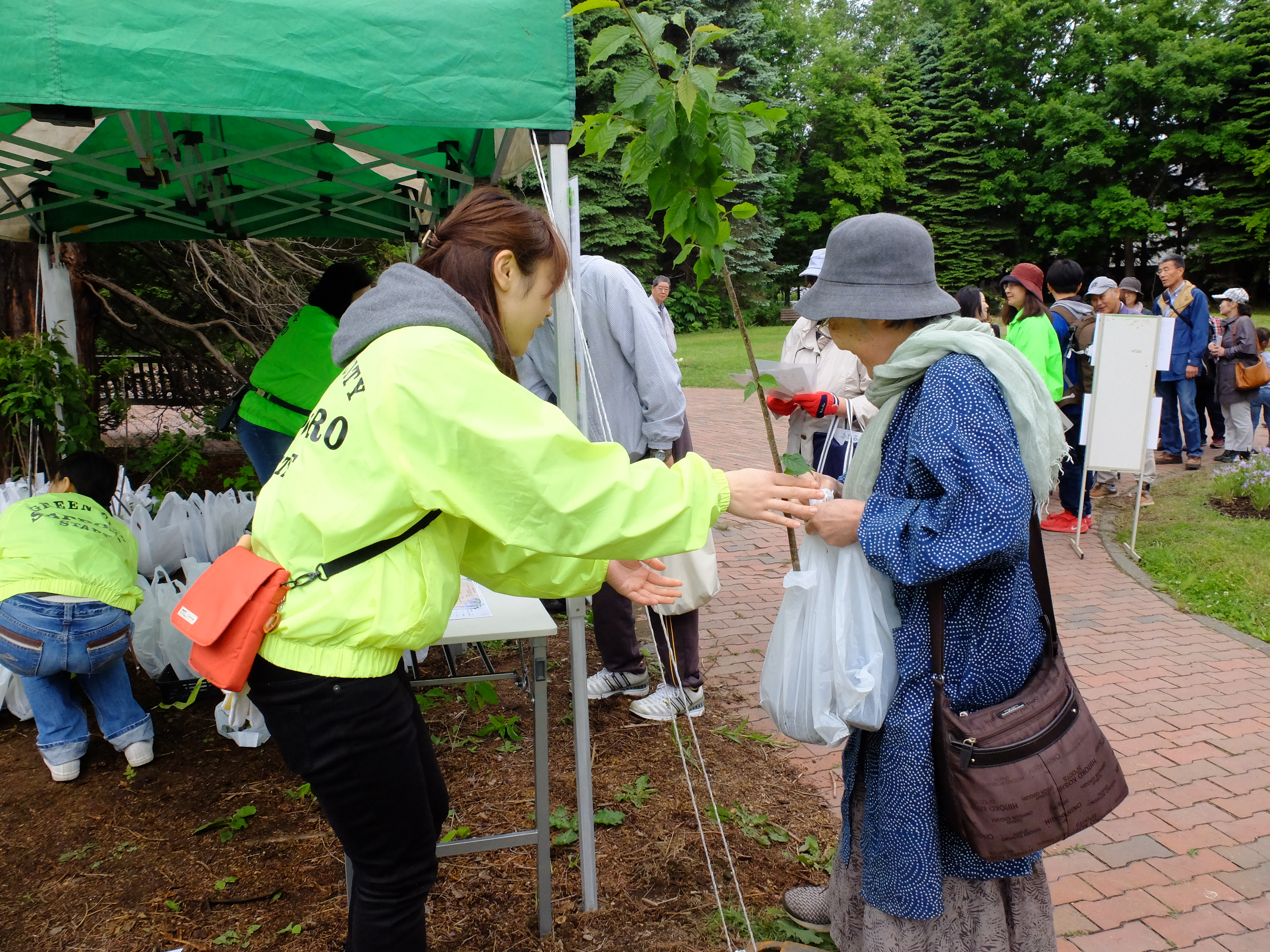 お天気の良い日だったこともあり、多くの方に記念樹を配布することができました。