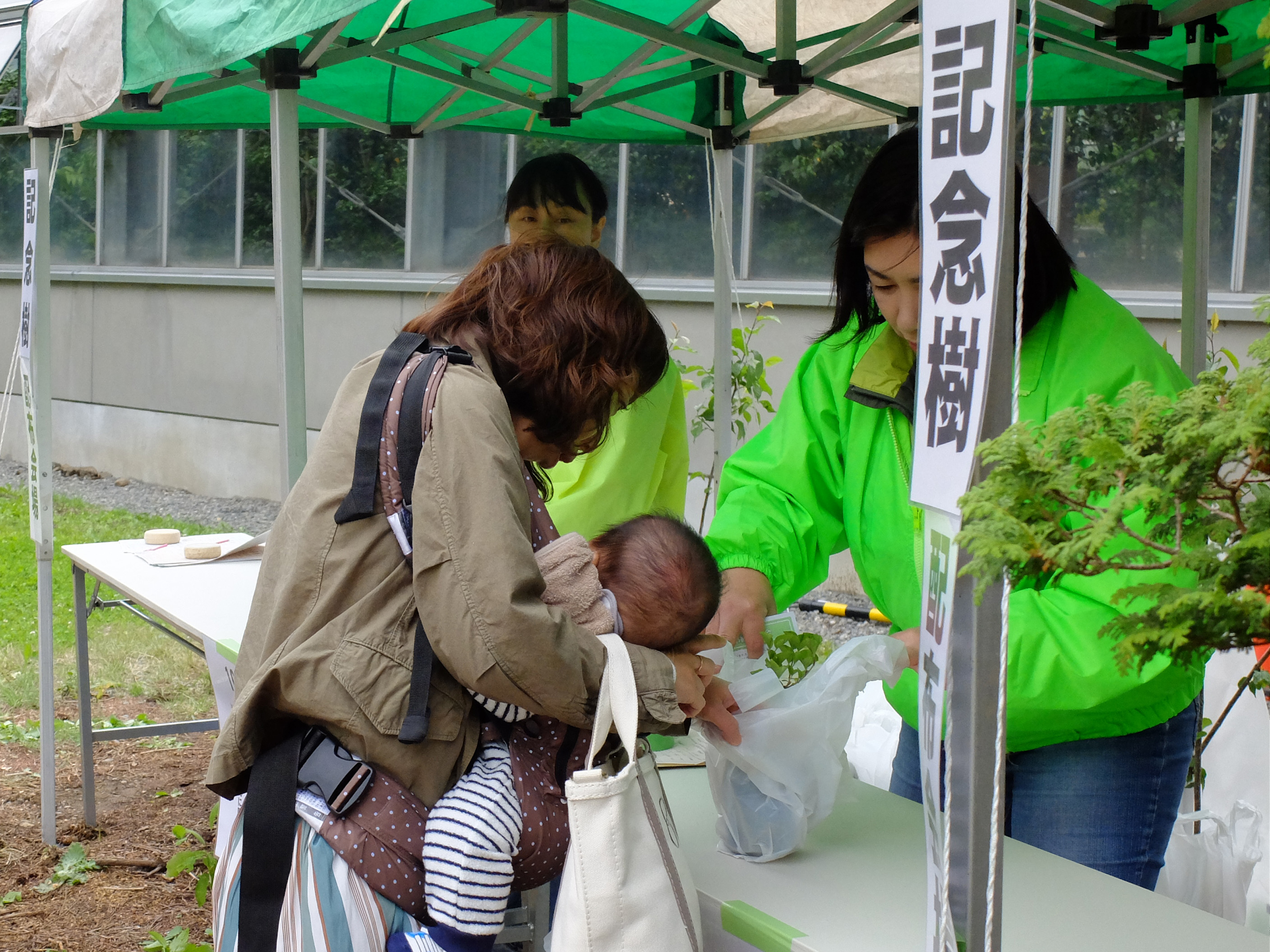 お子様の誕生や入学、ご結婚、ご自宅の新築、定年退職など、記念樹を引き換えにいらした方々それぞれにお祝い事があり、苗を植えることを楽しみにしてくださっているようです。