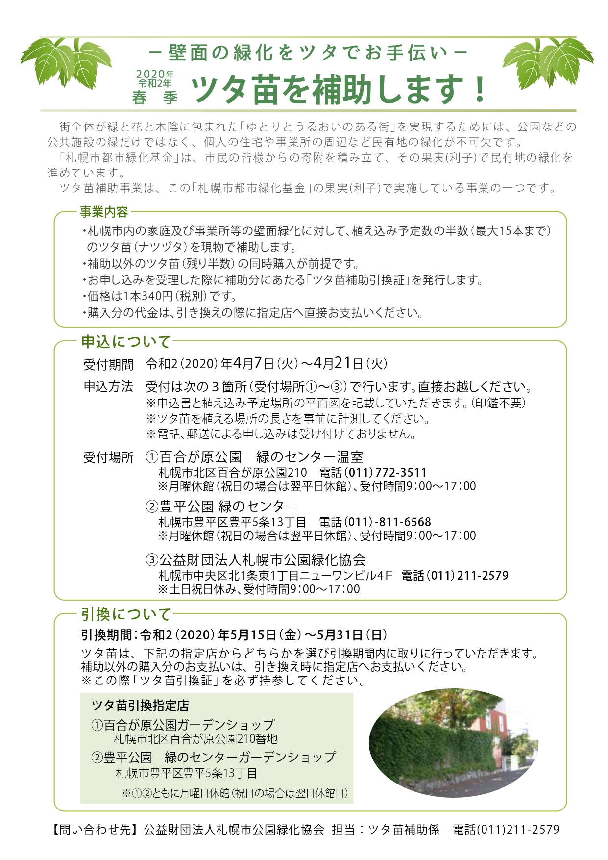 公益財団法人札幌市公園緑化協会 ツタ苗補助係