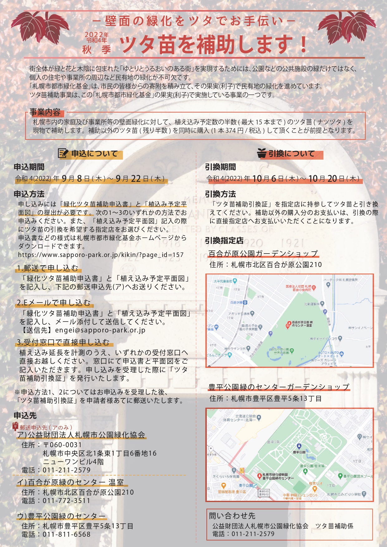 ※申込受付は公益財団法人札幌市公園緑化協会 のみで行います。