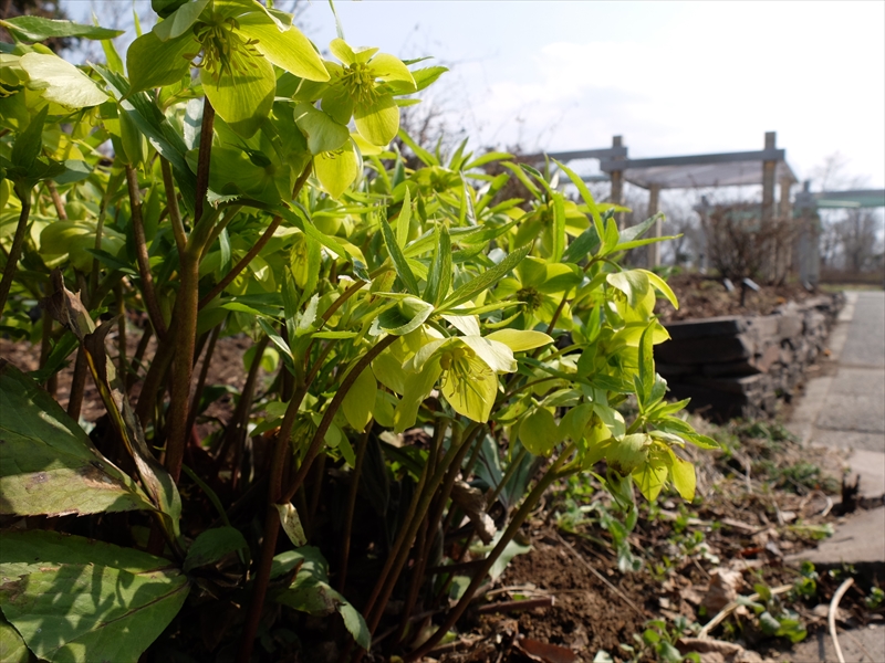 ぽかぽかと暖かく、正門からリリートレインに向かうボーダーガーデンでは宿根草たちがいくつも顔を出し、花を咲かせていました。