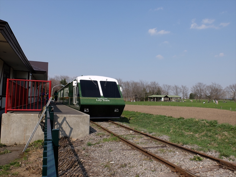 明日のオープンを前に出番を待つリリートレイン。画像右奥の芝生広場ではたくさんの子どもたちが遊んでいました。