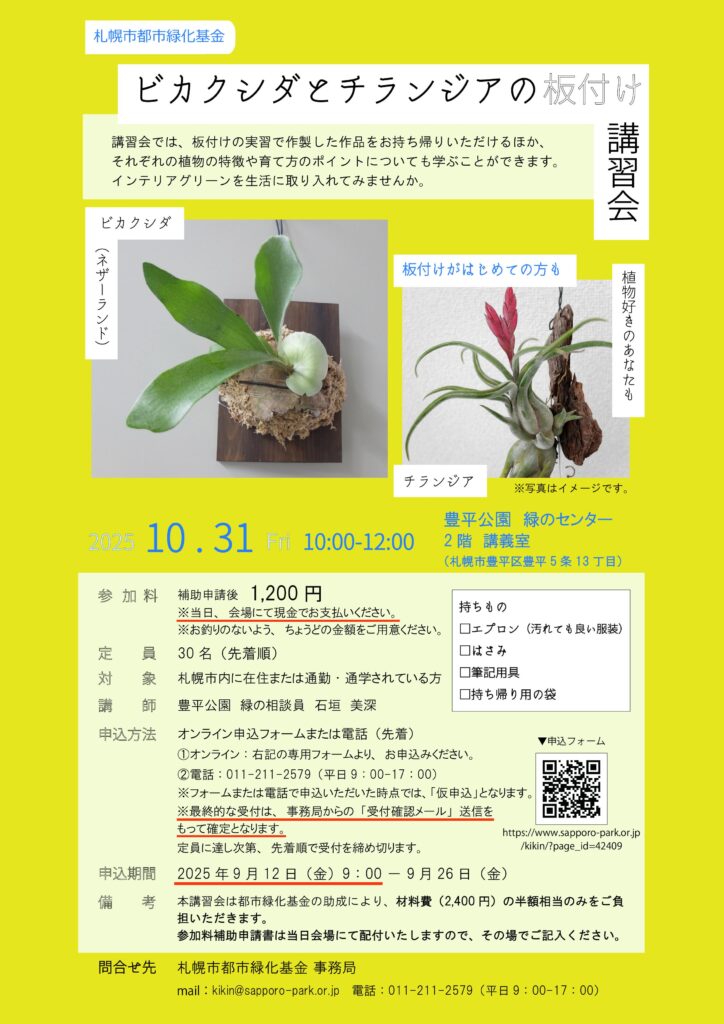 札幌市都市緑化基金「ビカクシダとチランジアの板付け講習会」