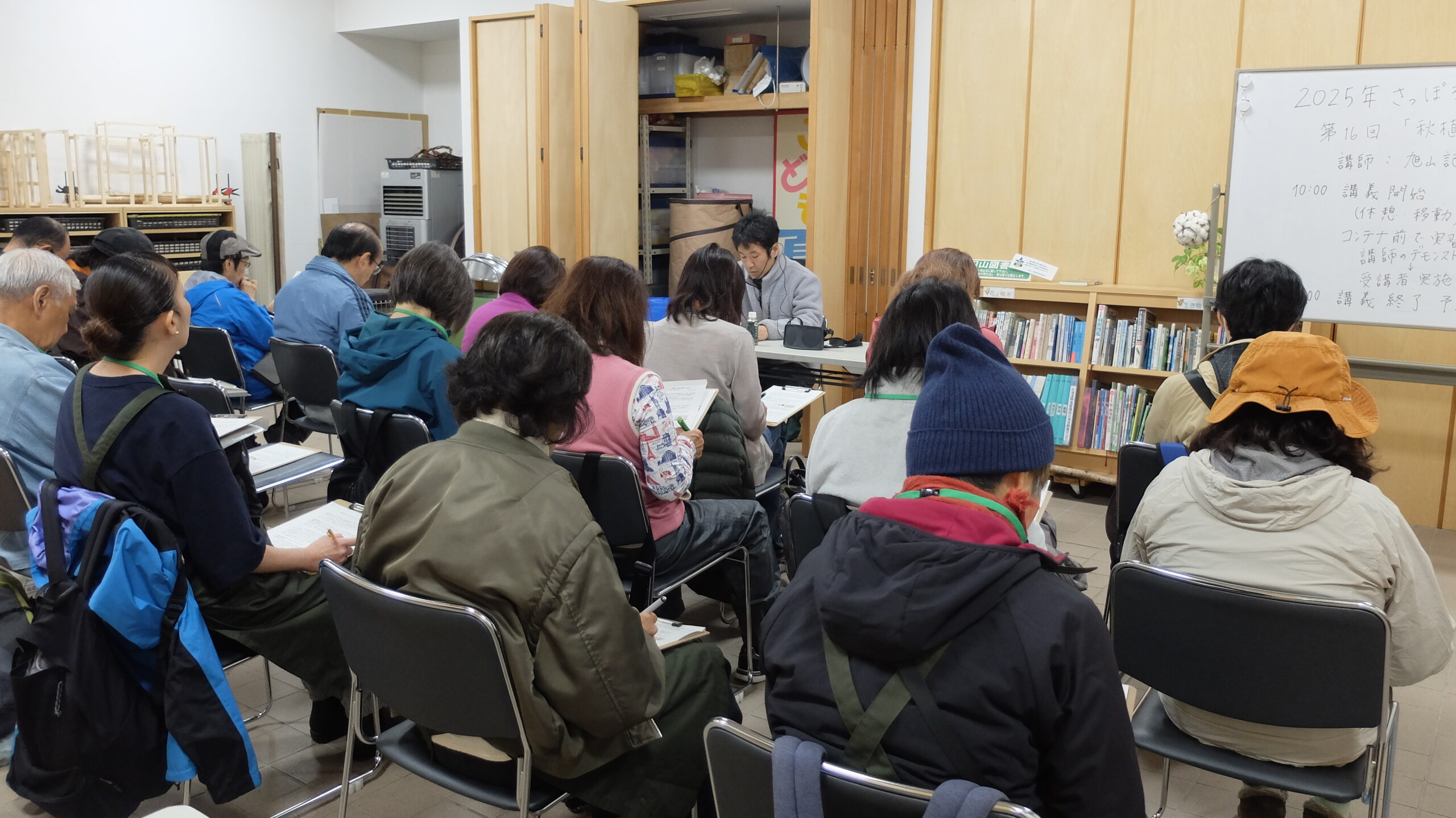 2025年11月8日土曜日、2025年さっぽろまちづくりガーデニング講座の第17回目「札幌の”みどり”」を豊平公園緑のセンターで行いました。春から行ってきた講座の最終回となる今回は「札幌の”みどり”」と題して、私たちが住む札幌市の緑の現状や花と緑のまちづくりのこれからについて学びます。講師は札幌市建設局みどりの推進部 みどりの管理課都市緑化係長の松里浩二様です。
