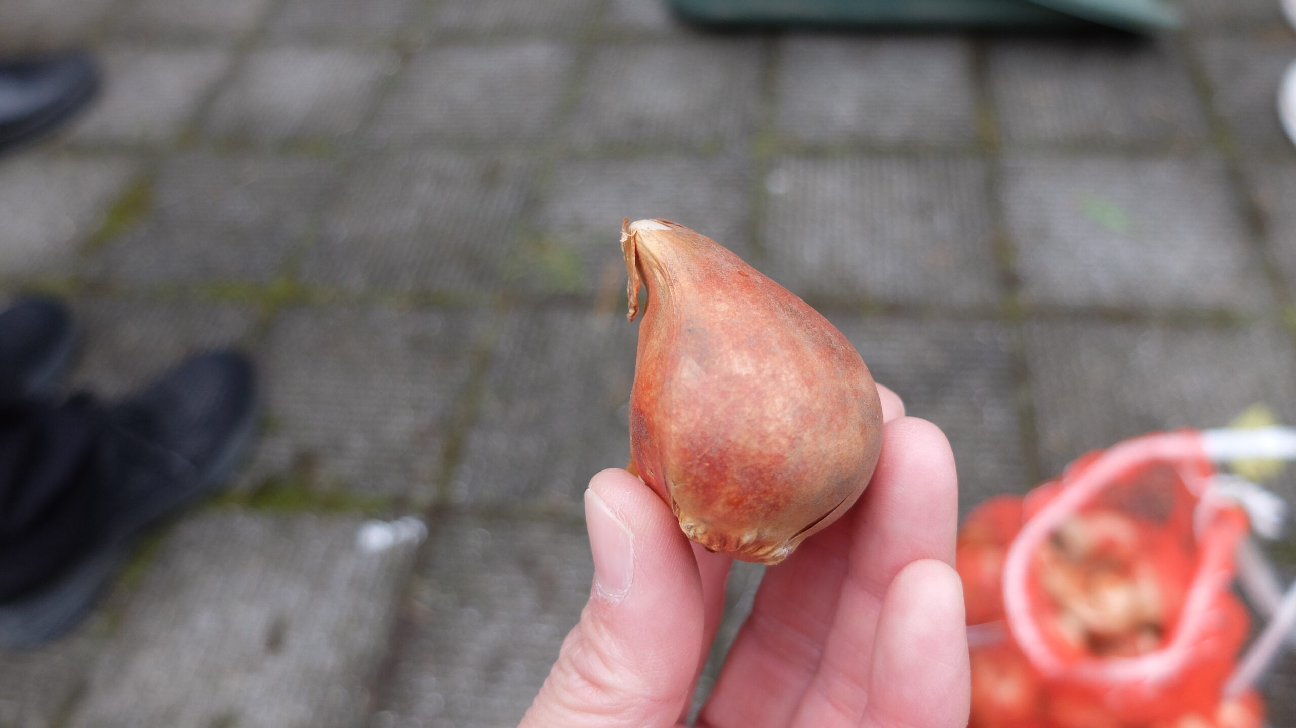 講師よりチューリップの球根には平らな面と丸みをおびた面があり、球根は葉が出る向きが決まっているので、向きを揃えて植えることで、春には綺麗に並んだ状態で生長することが説明されました。