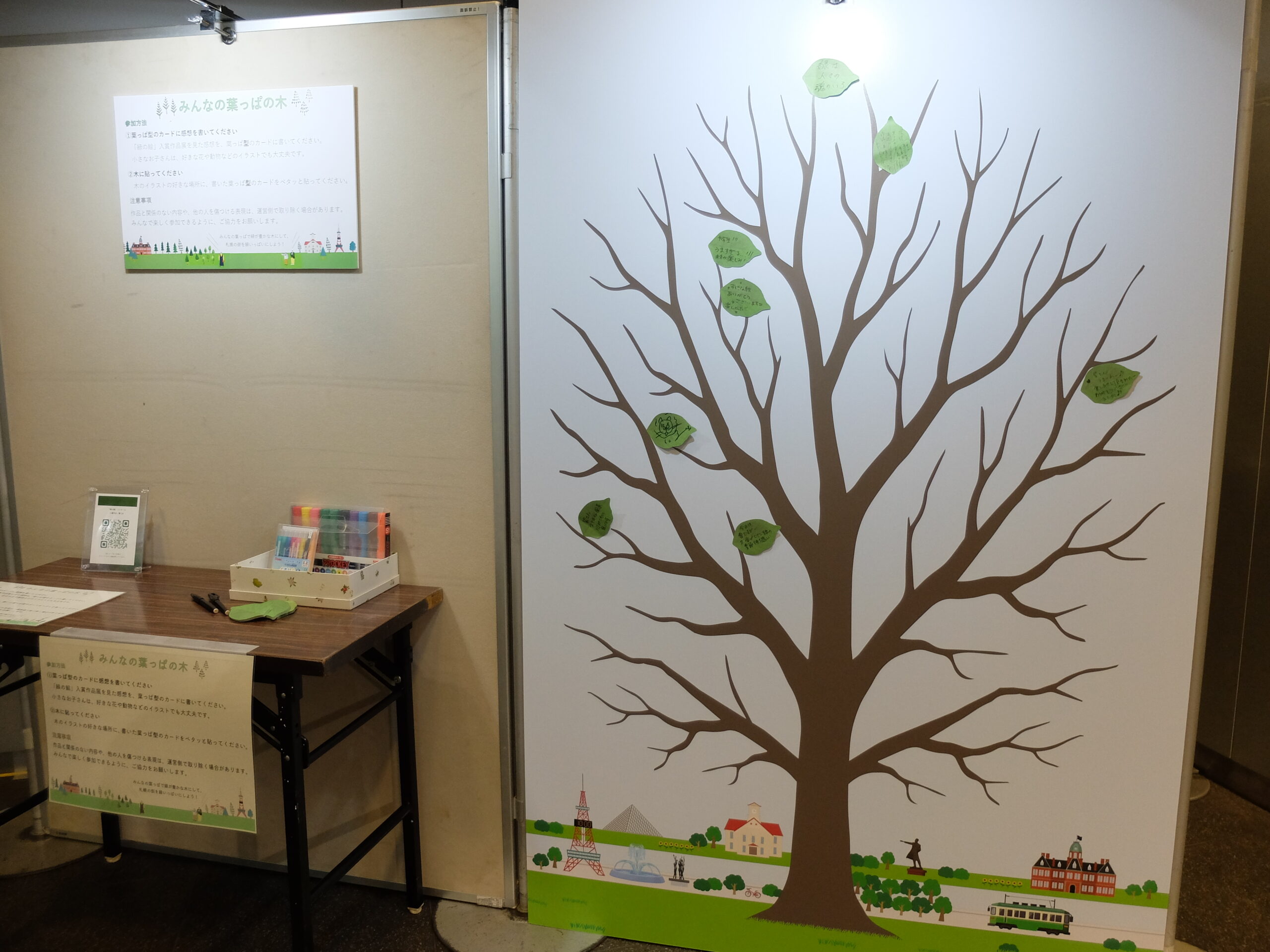 期間中は、来場者の皆さまに感想を書いていただく「みんなの葉っぱの木」も実施しています。