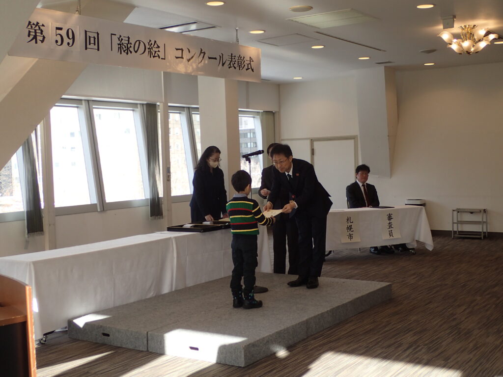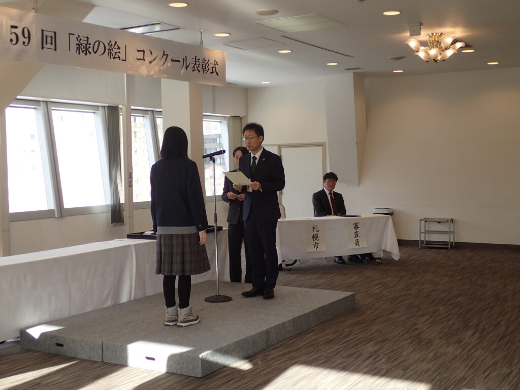 2025年12月13日土曜日に第59回「緑の絵」コンクールの表彰式をさっぽろテレビ塔の2階ホールで開催しました。