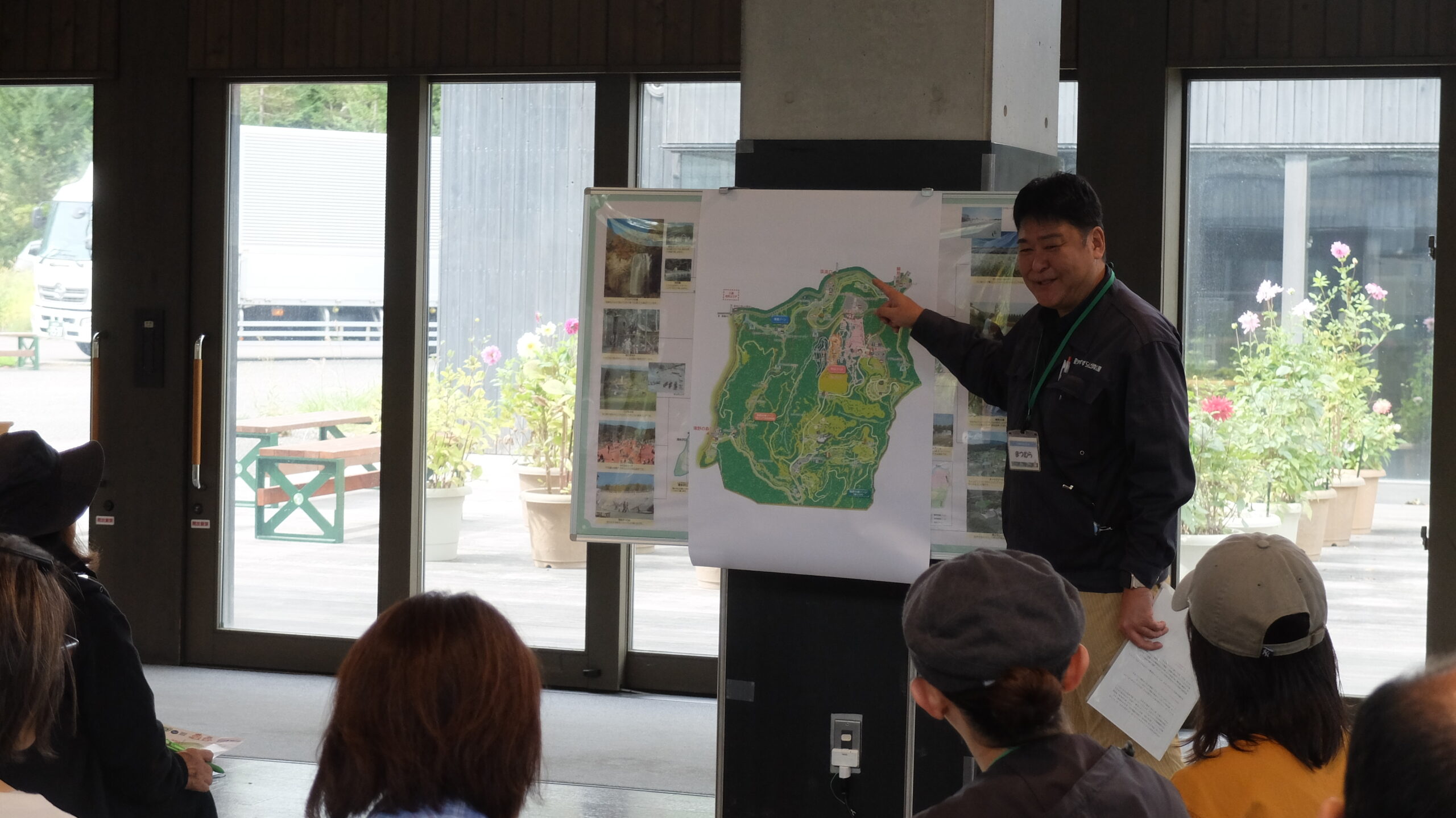 はじめに、滝野管理センター松村植物管理係長より、公園の概要や園内で活動しているボランティア団体について説明していただきました。