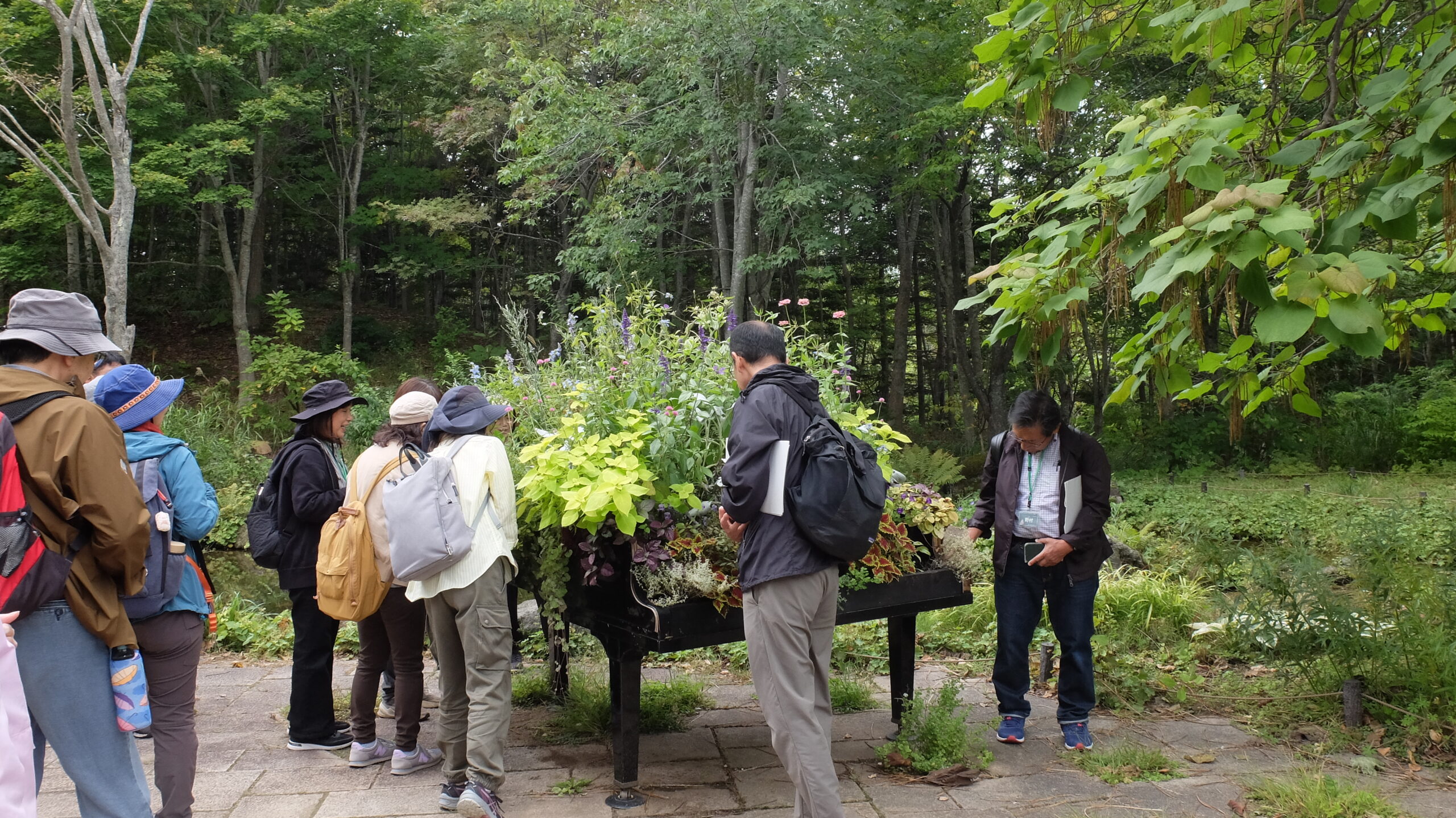 「花人の隠れ家」には本物のグランドピアノを土台にした花壇があり、その仕組みにみなさん興味津々でした。