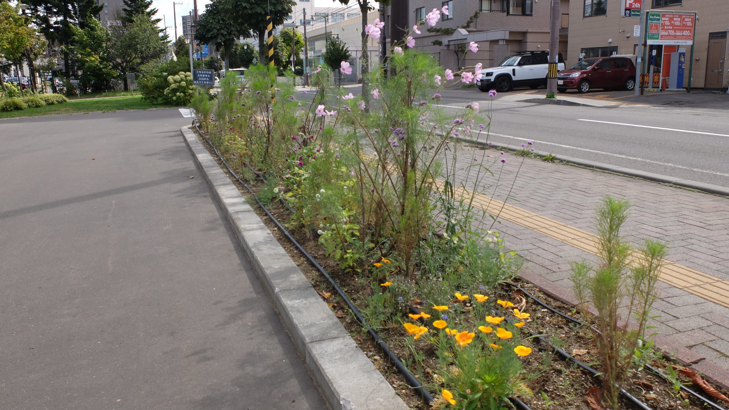 ここ数週間でぐっと冷え込むようになった札幌ですが、そんな寒さにも負けずにインパチェンスやサルビア、バーベナボナリエンシスが逞しく咲いていました。