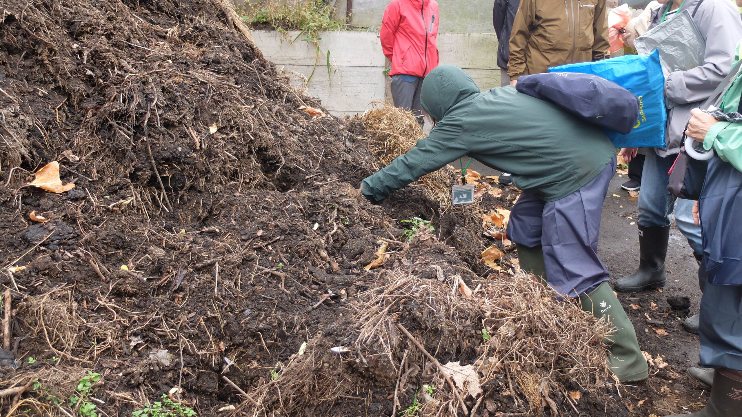 熟成中の堆肥は、表面の土を掘って触れてみると温かさが感じられ、微生物の活動が盛んなことがわかりました。