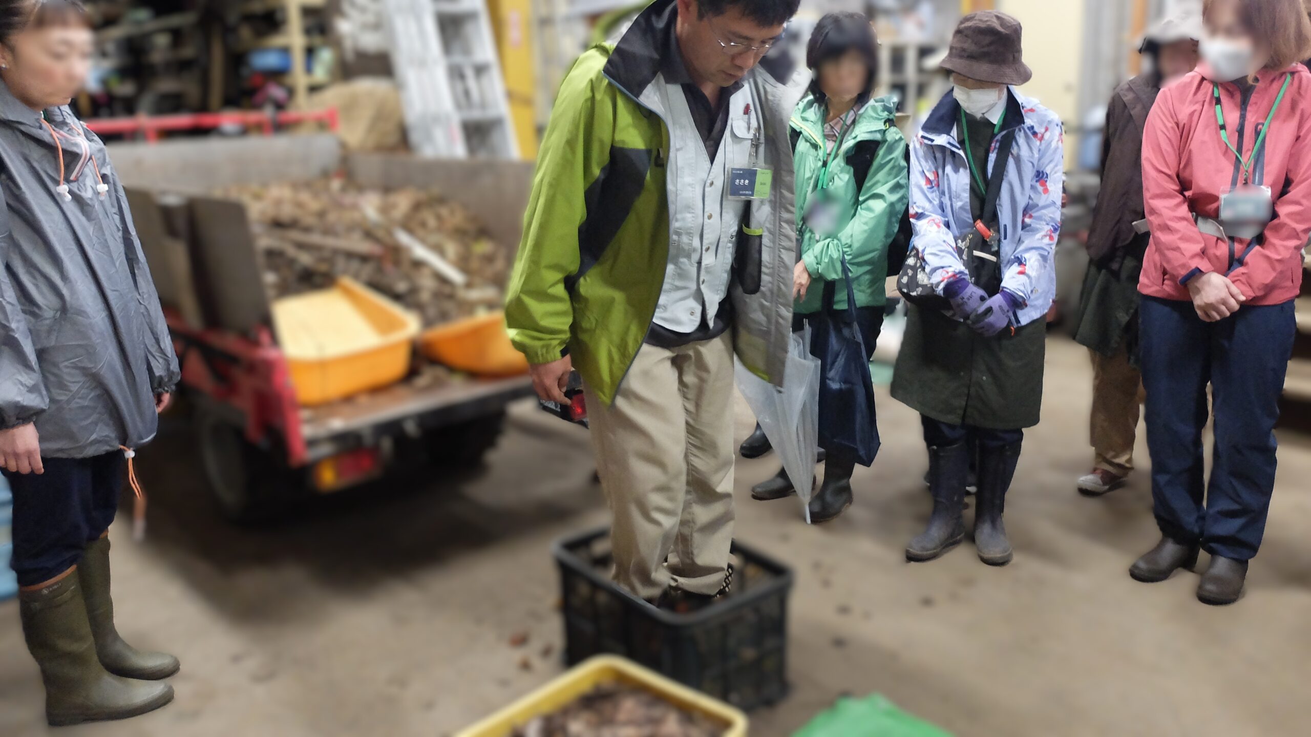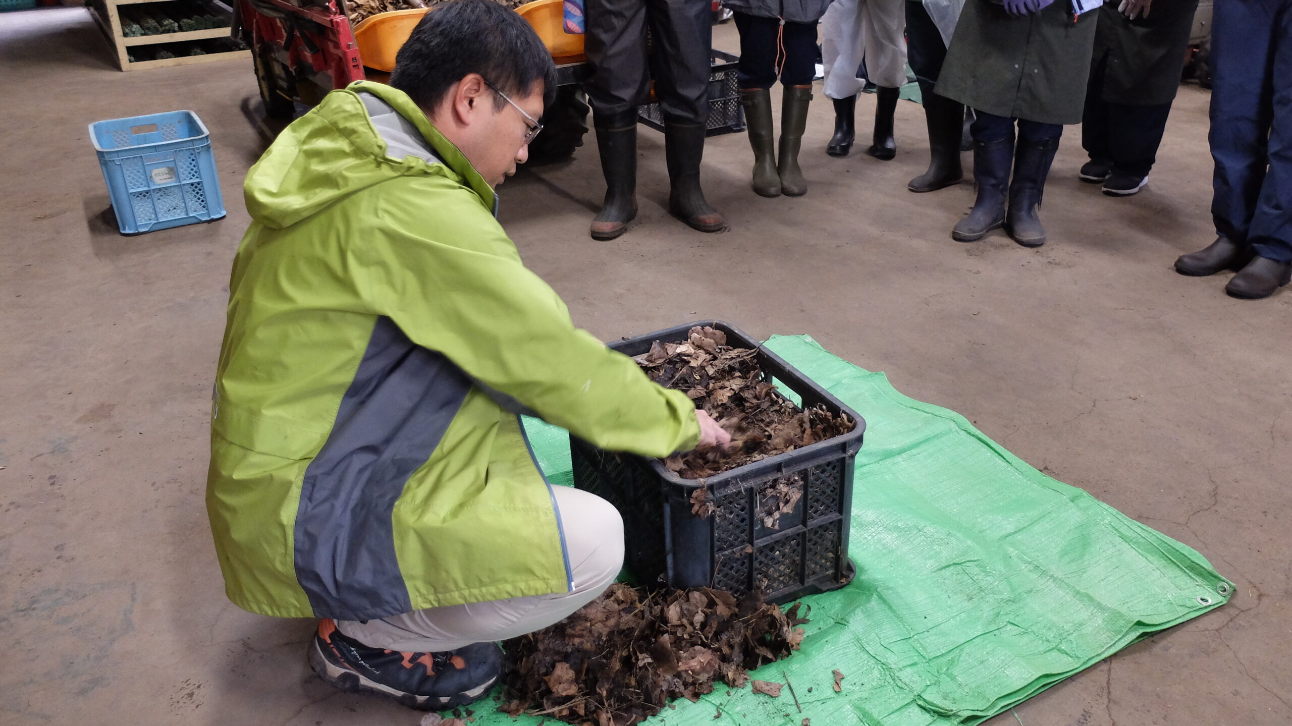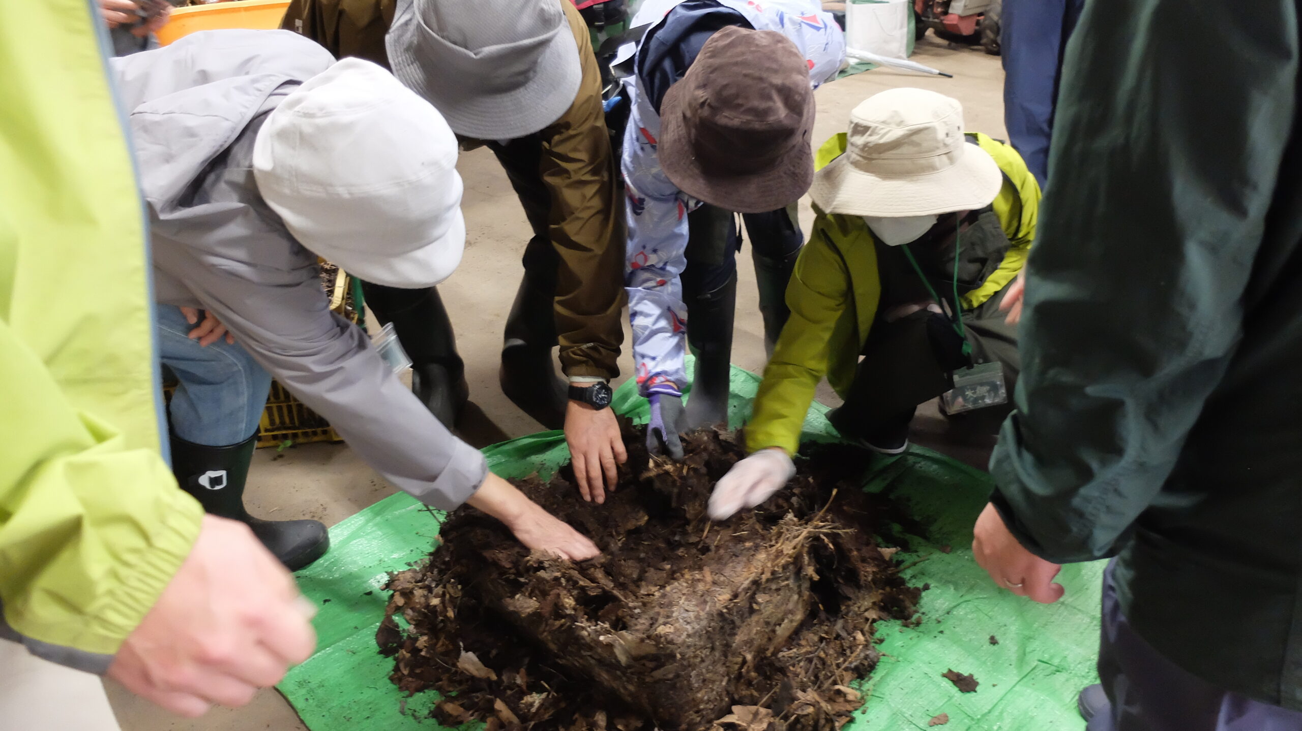 次は倉庫へ戻り、昨年の受講者がつくった落ち葉堆肥を見学しました。