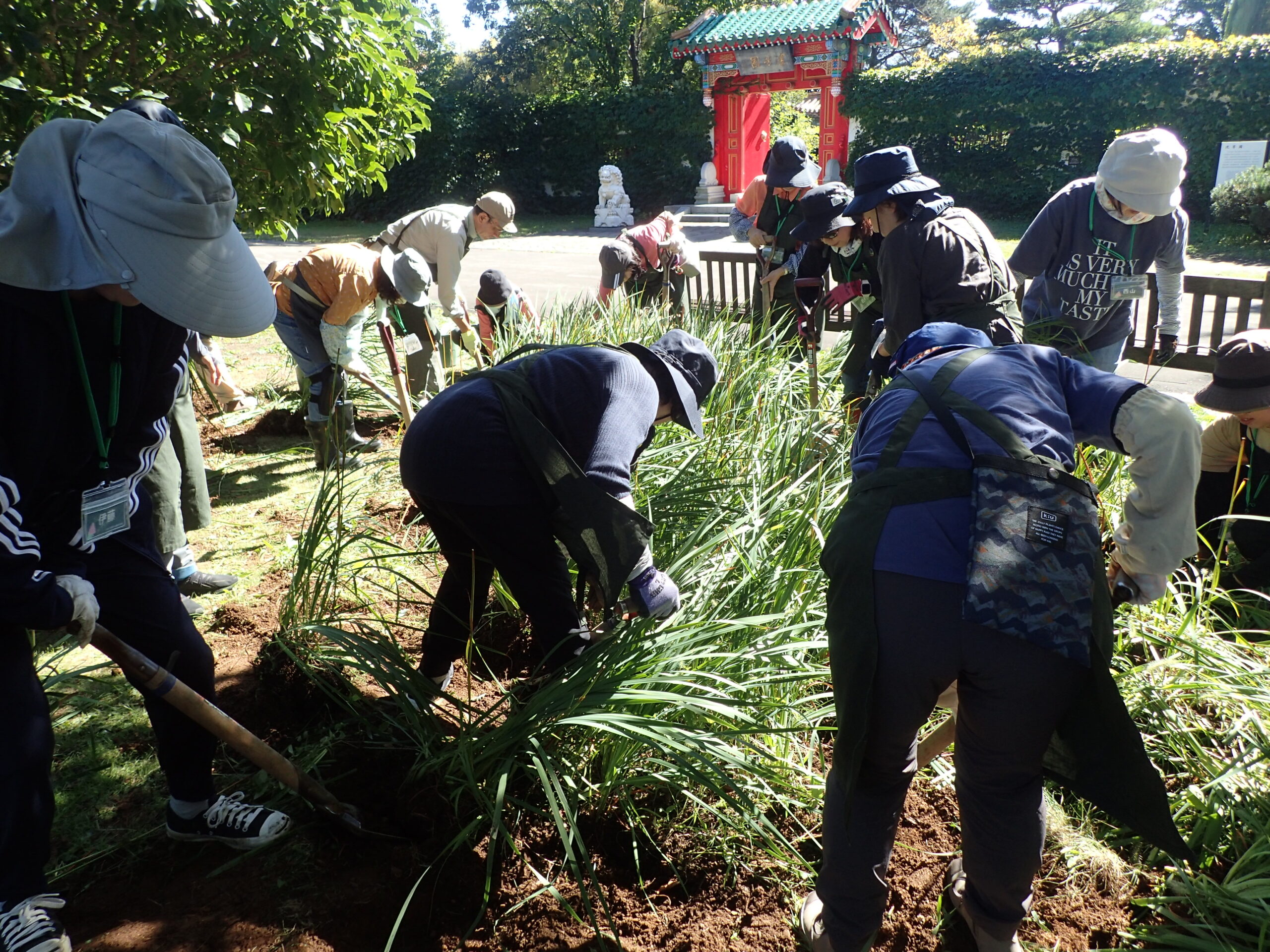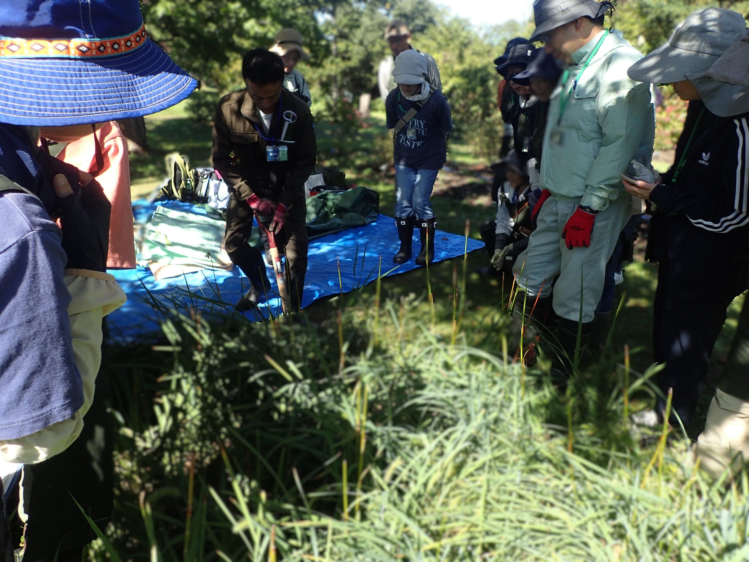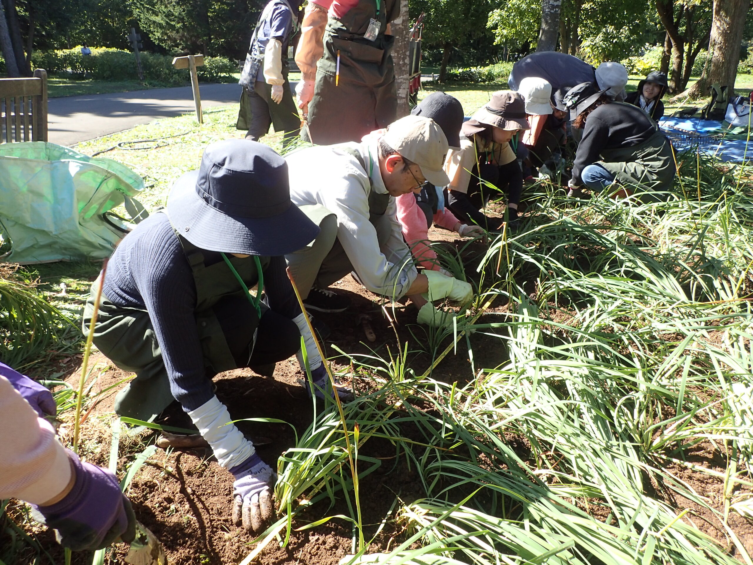 続いて、園内の「世界の庭園」へ場所を移し、シベリアアヤメの株分けの実習を行いました。
