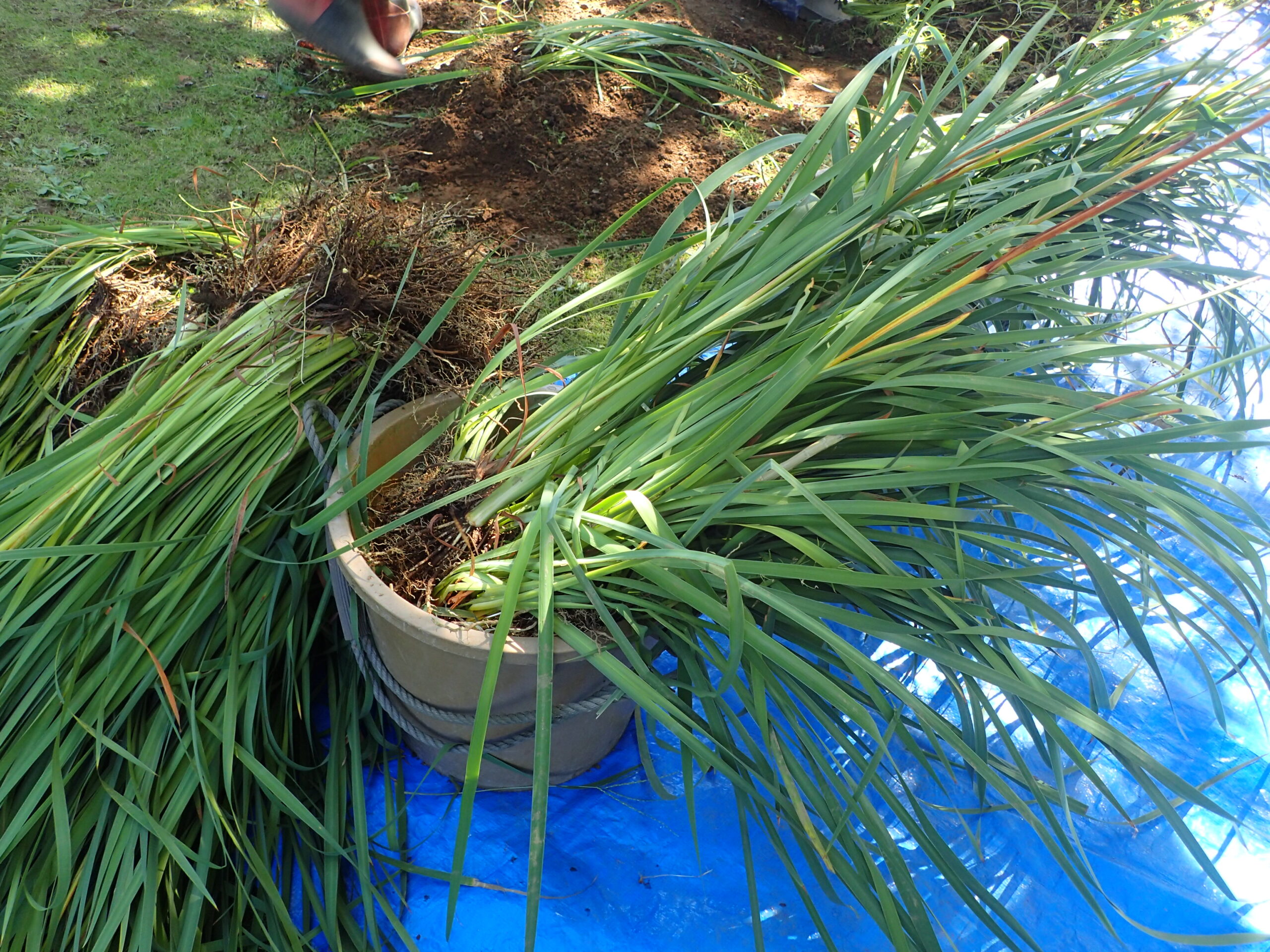 掘り取った株は、水を張ったバケツの中に入れ、水を十分に吸わせます。