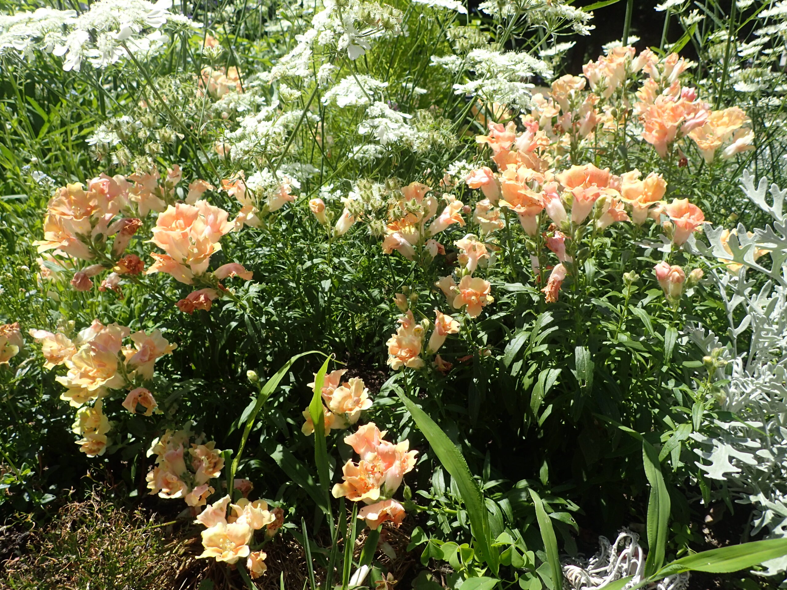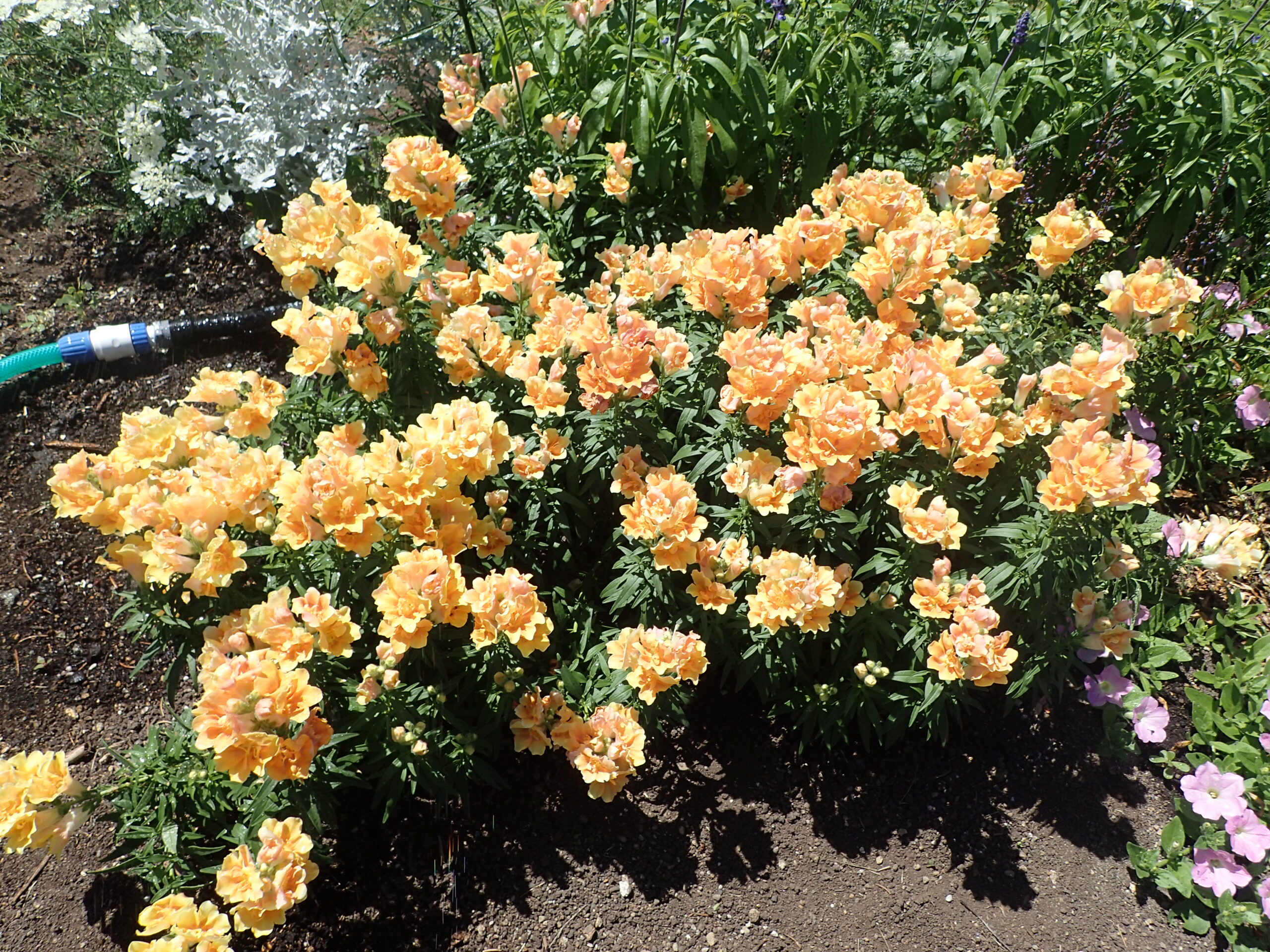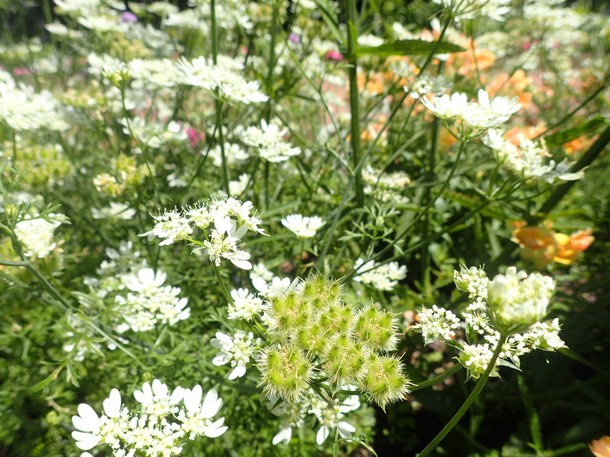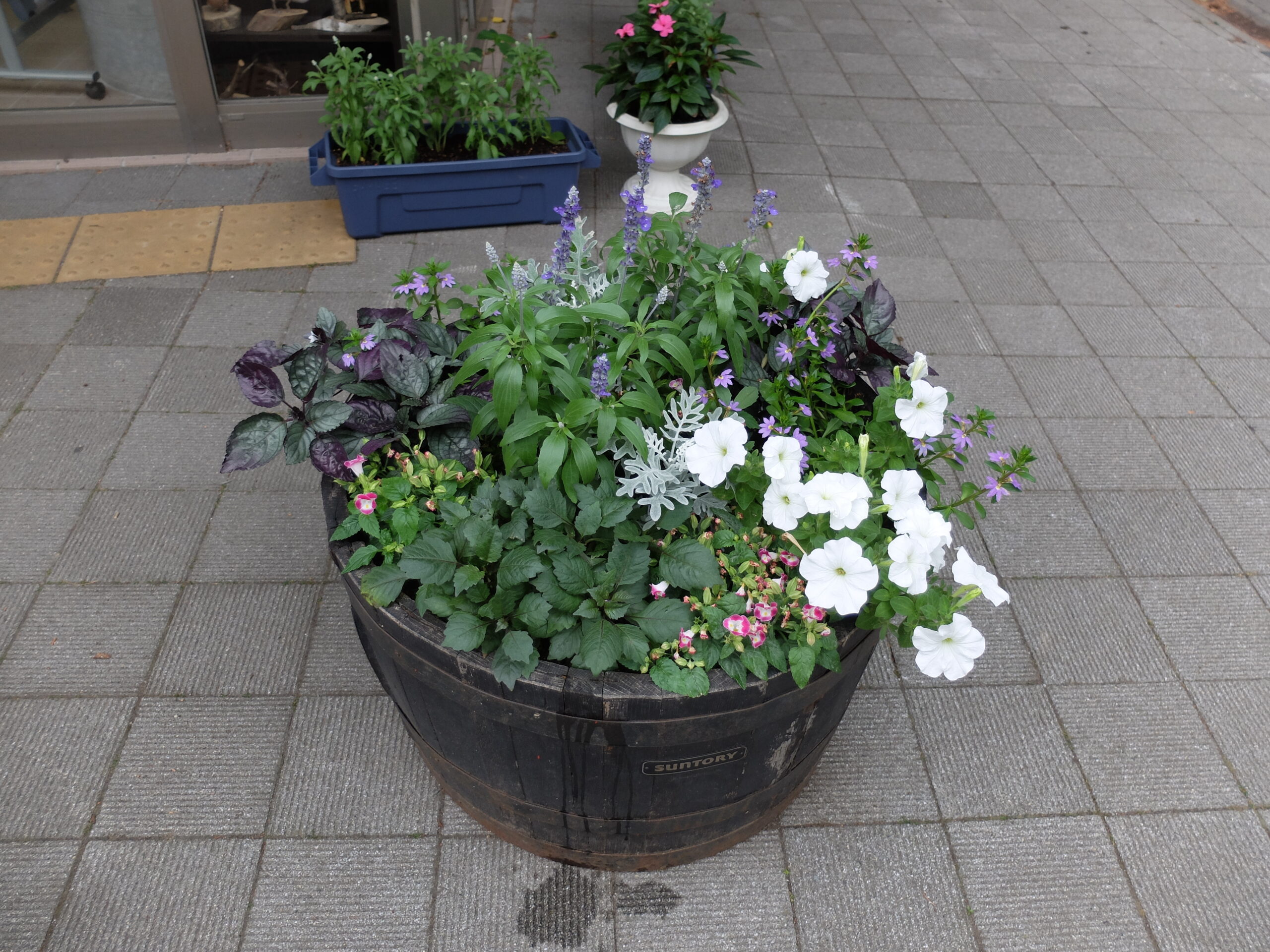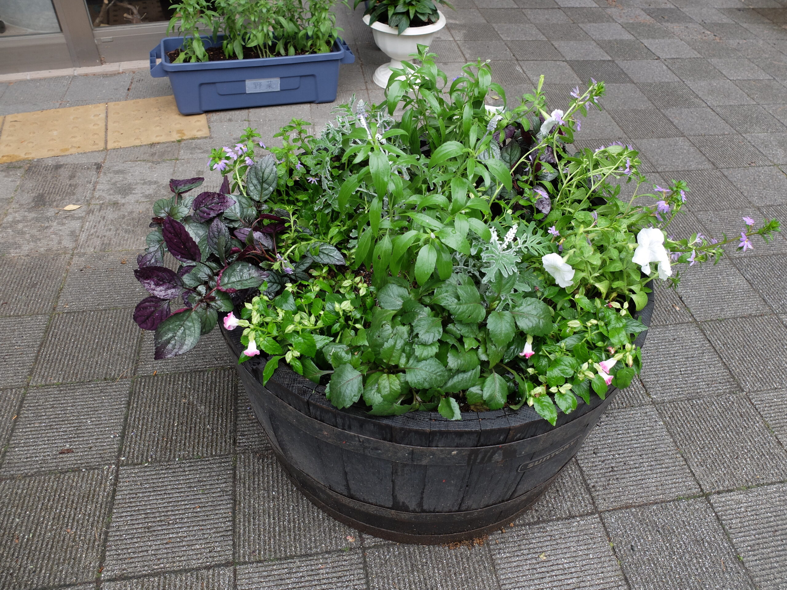 ペチュニアやインパチェンス、サルビアが色とりどりに咲き、背の高くなったバーベナボナリエンシスやオルラヤが風に揺れ、コキアもモリモリと大きく生長していました。