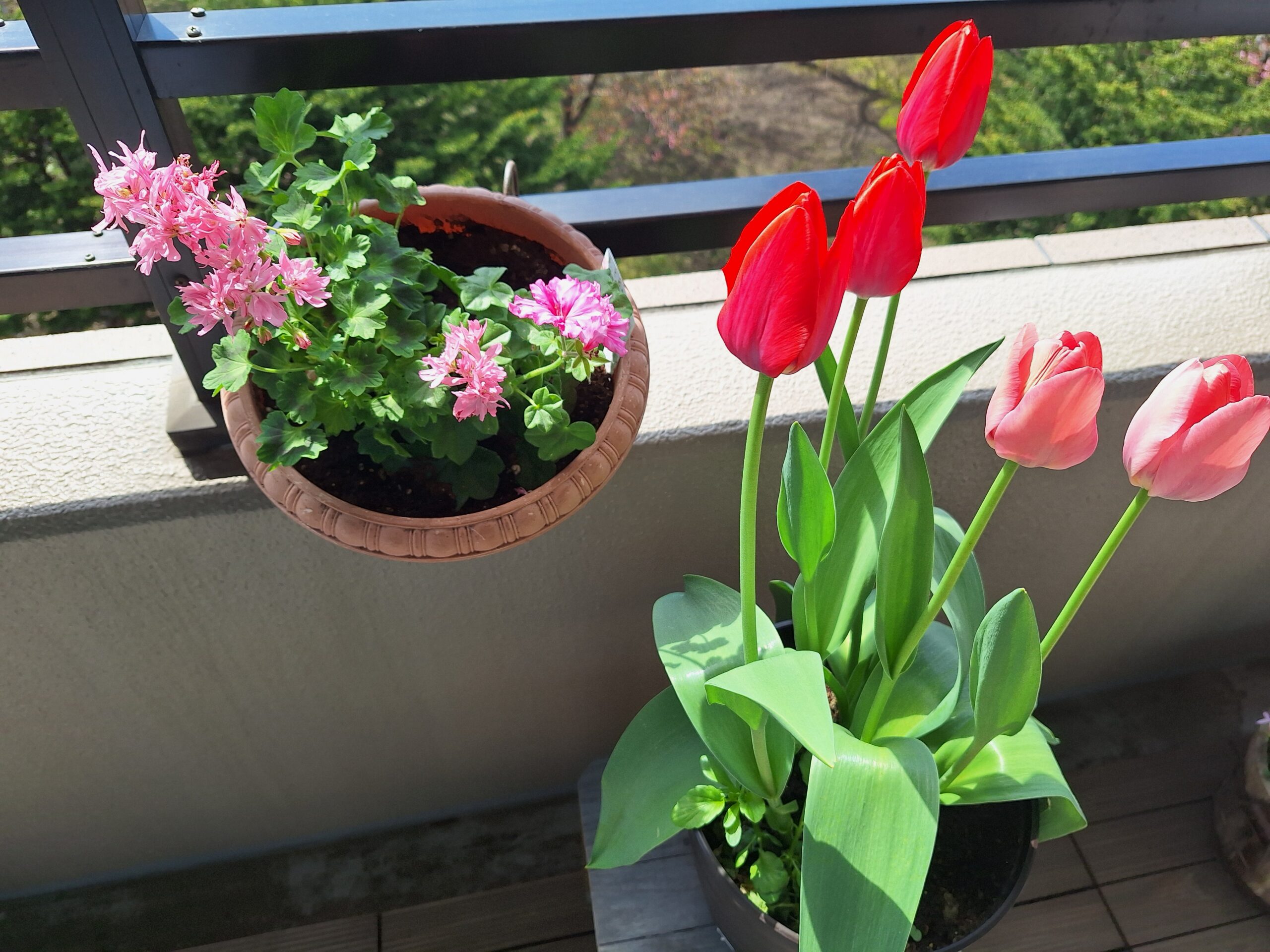 「玄関ポーチの中で冬越しをしたので少し心配でしたが、無事チューリップも咲き始めて良かったです。」とのコメント付きで、まだ寒い時期でしたが、この知らせのおかげで、心はほっとあたたかな気持ちになりました。