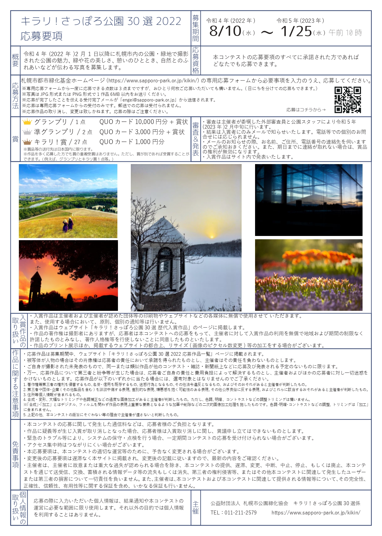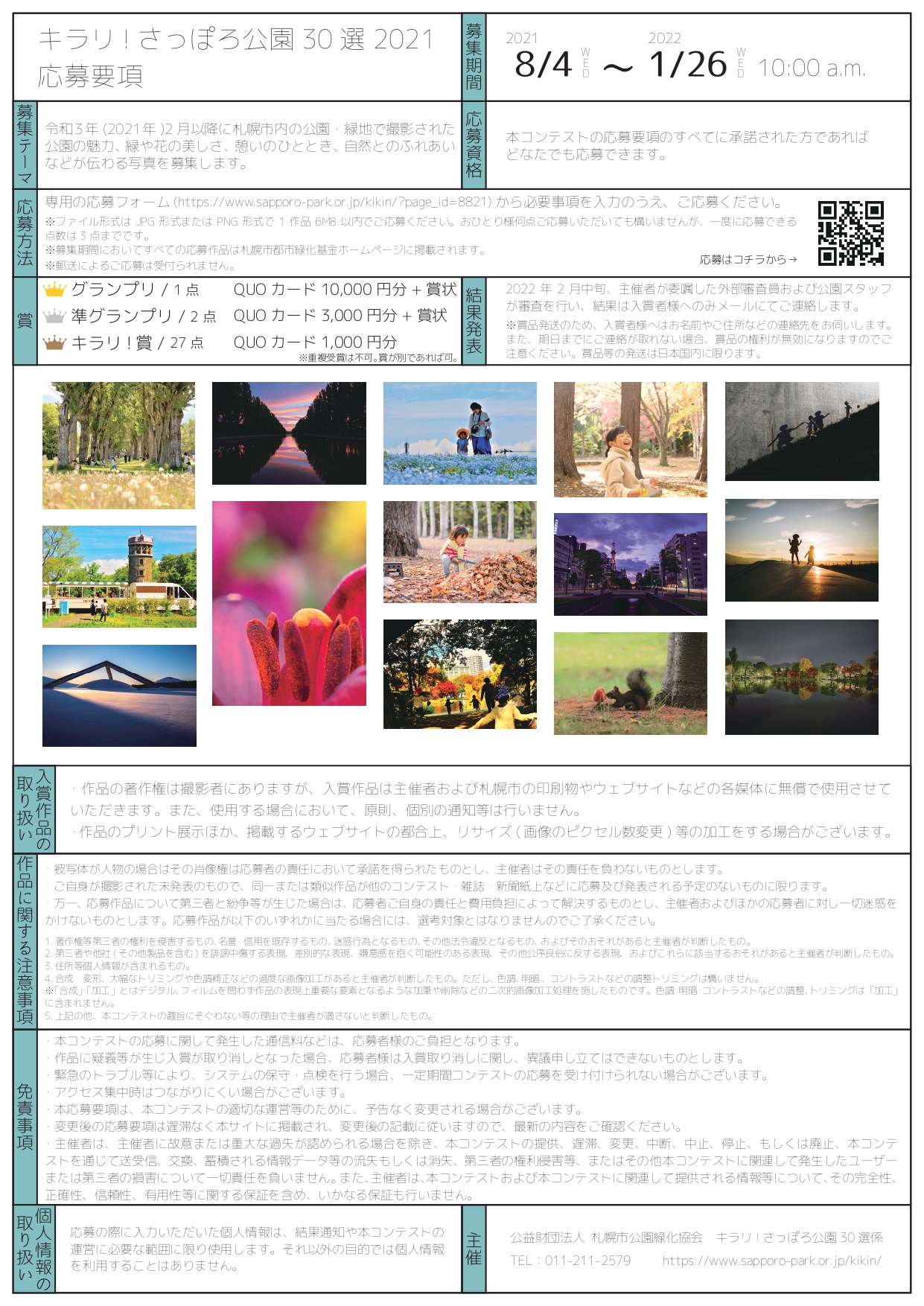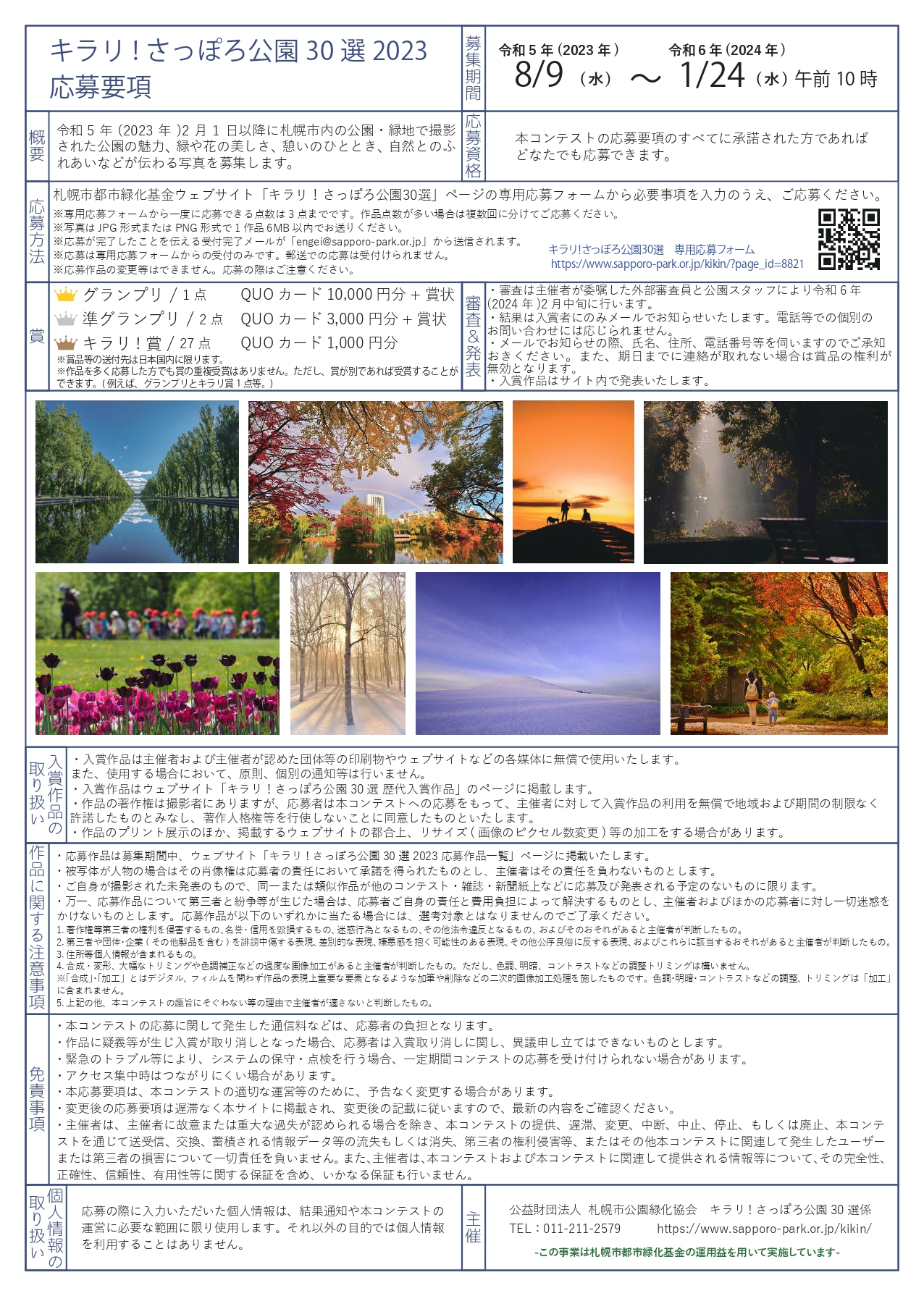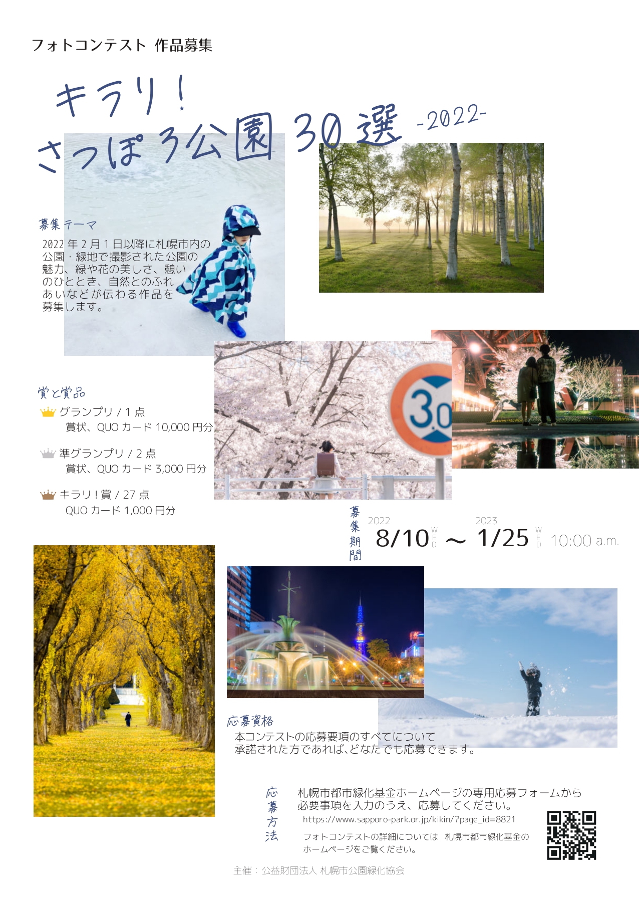 応募方法や作品に関する注意事項などの詳細は「キラリ!さっぽろ公園30選」のページよりご確認下さい。