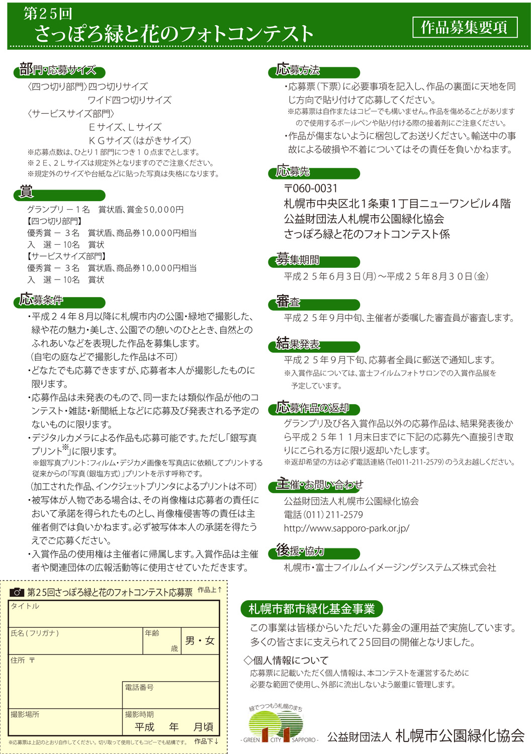 ✿第25回 さっぽろ緑と花のフォトコンテストの募集が始まります✿