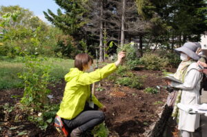 百合が原公園内にはどんな宿根草が植えられているか、それぞれの品種の芽の場所や株分けの際のポイント等を実物を見ながら教わりました。