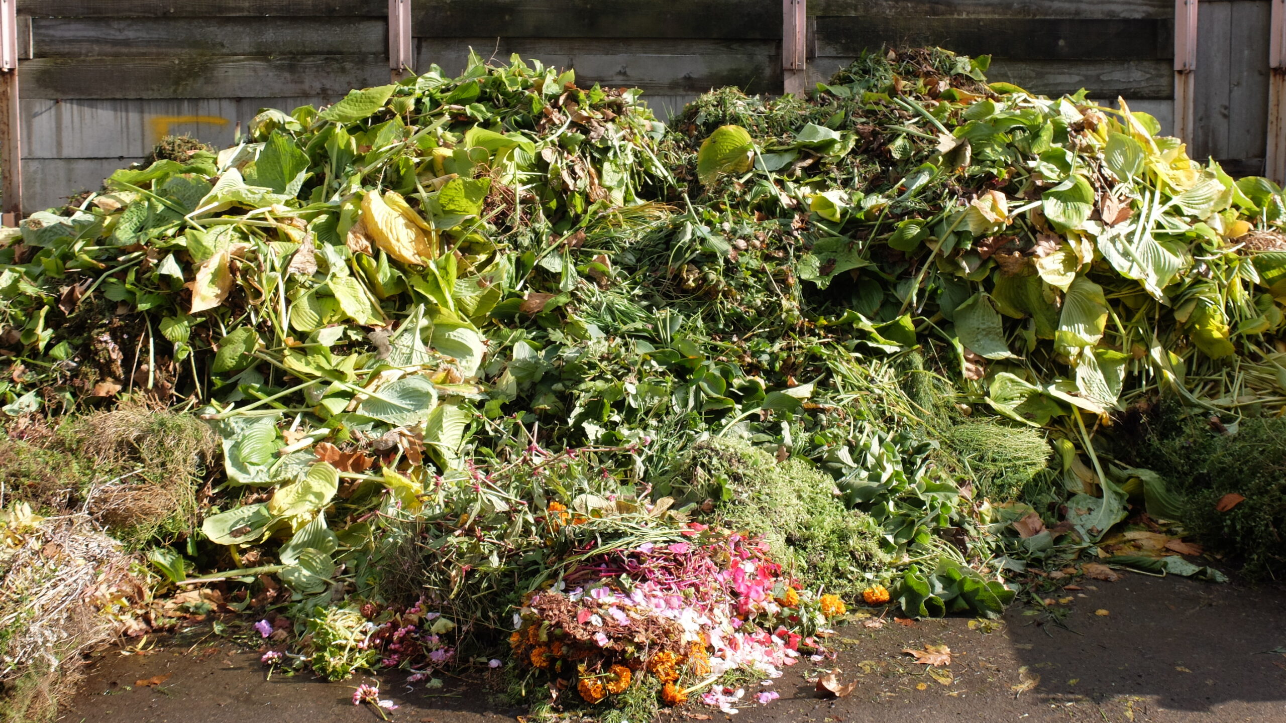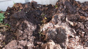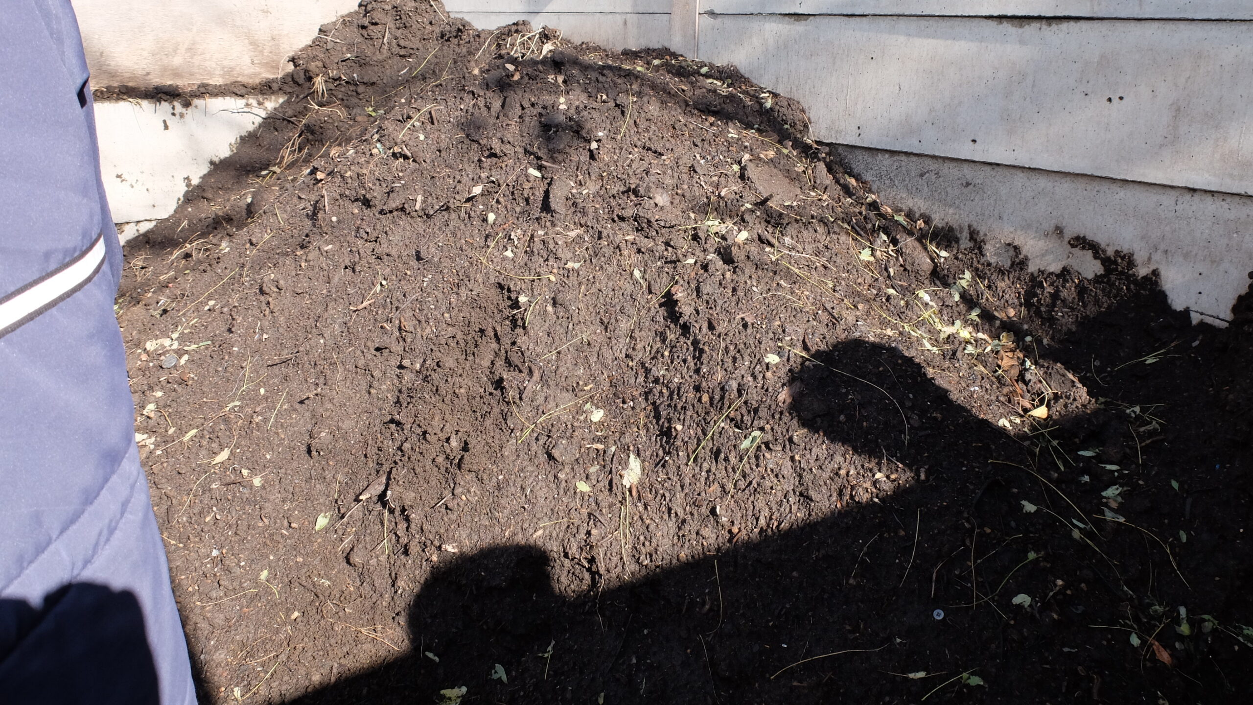 (写真左下)の状態にまで堆肥化が進むと堆肥として利用できます。