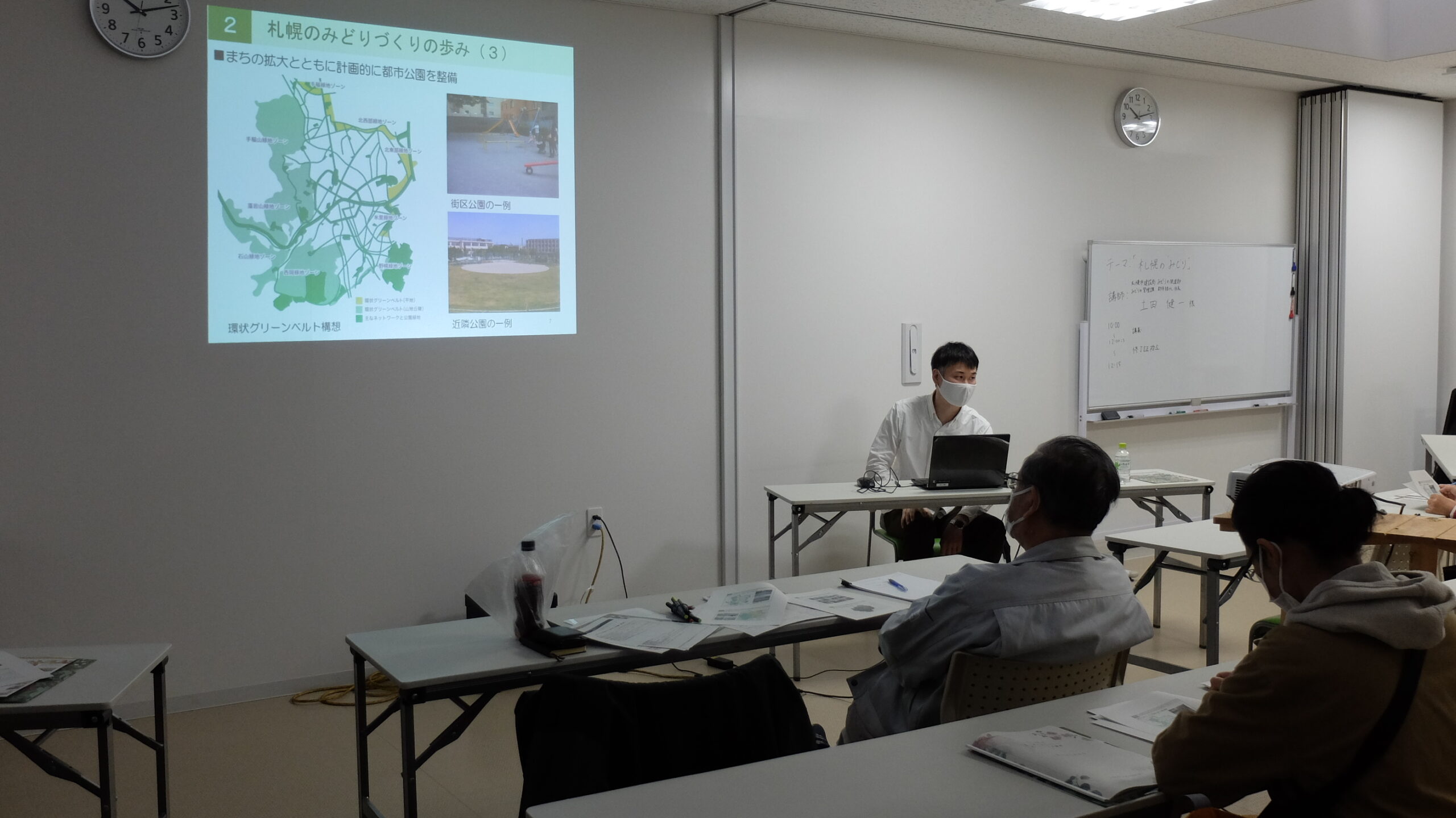 札幌市における”みどり”づくりの歩みや計画、札幌の街の変遷、都市緑化係でされている市街地のみどりを増やすために行っている取り組み等についてお話いただきました。