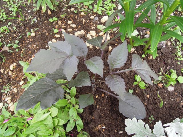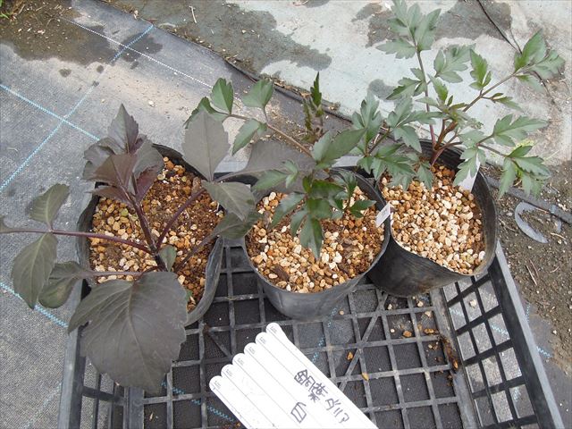 ダリアの色によって、葉も特徴がありますね。
