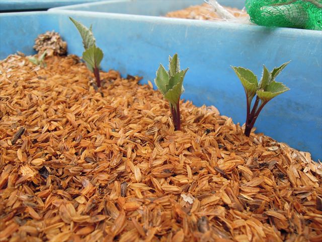 しめらせた籾殻やおがくずのベッドに寝かせておきます。ふっかふかー^^*