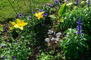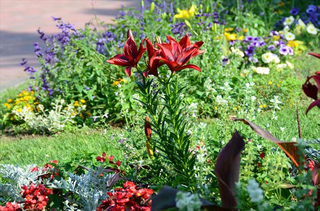 この花壇に植えられているユリは7月中旬頃に咲き終わってしまうので、7月下旬から8月ころにかけて咲くダリアを植えるというわけです。
