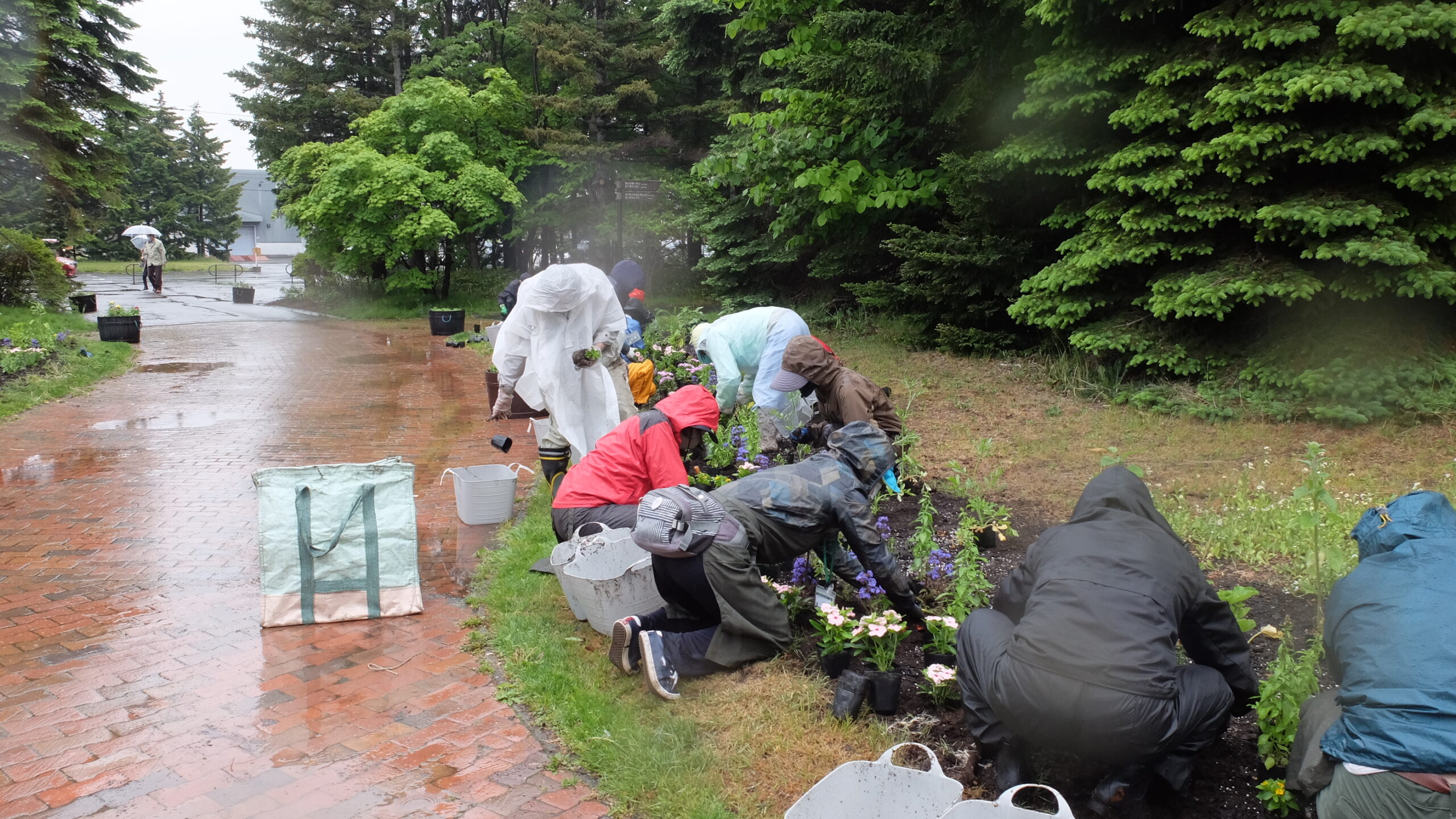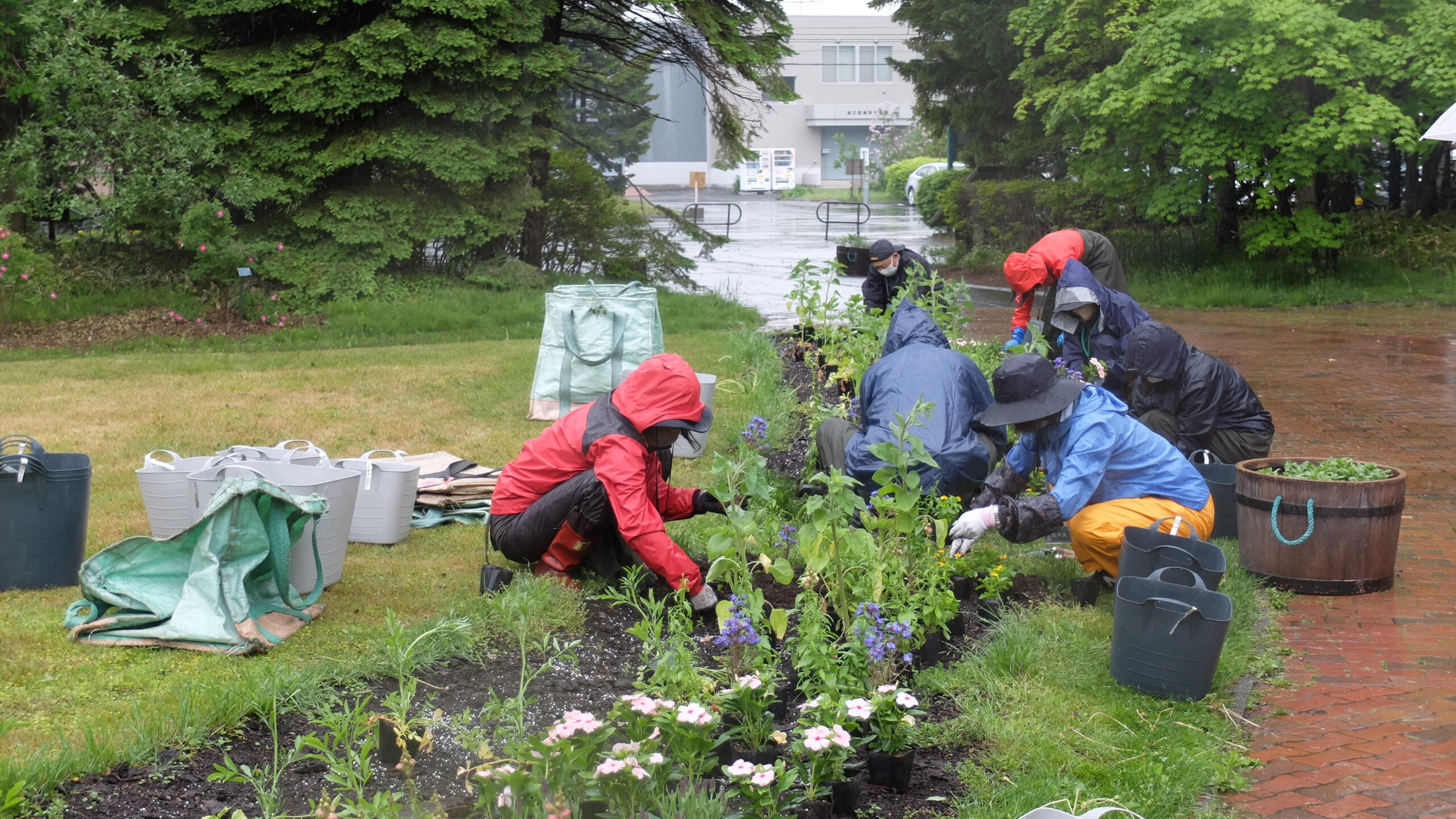 実習当日はあいにくの雨でしたが、2回目の植え込み実習ということもあってか、皆さんとても手早くあっという間に植え込みすることが出来ました。