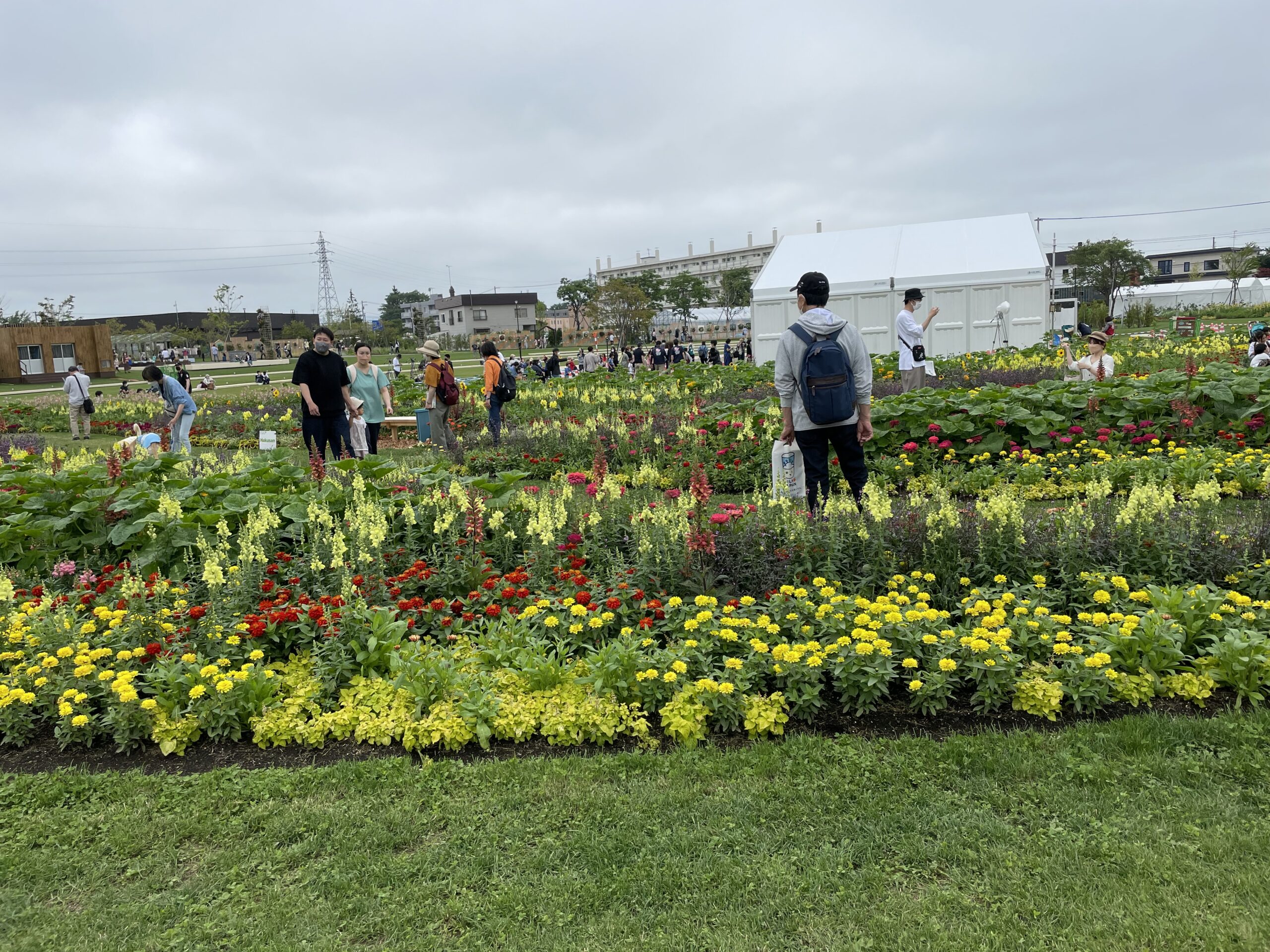 北海道らしいダイナミックさや色々な人が集まって、色々な個性のある咲き方をしている恵庭らしさを表現した花壇はフェア会期が終わった後には芝生広場に戻ってしまうので、今だけの花壇をぜひご堪能ください。