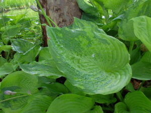 こちらはウイルスによってモザイク化したギボウシの葉ですが、こちらも斑入りのようにオシャレにも見えます。