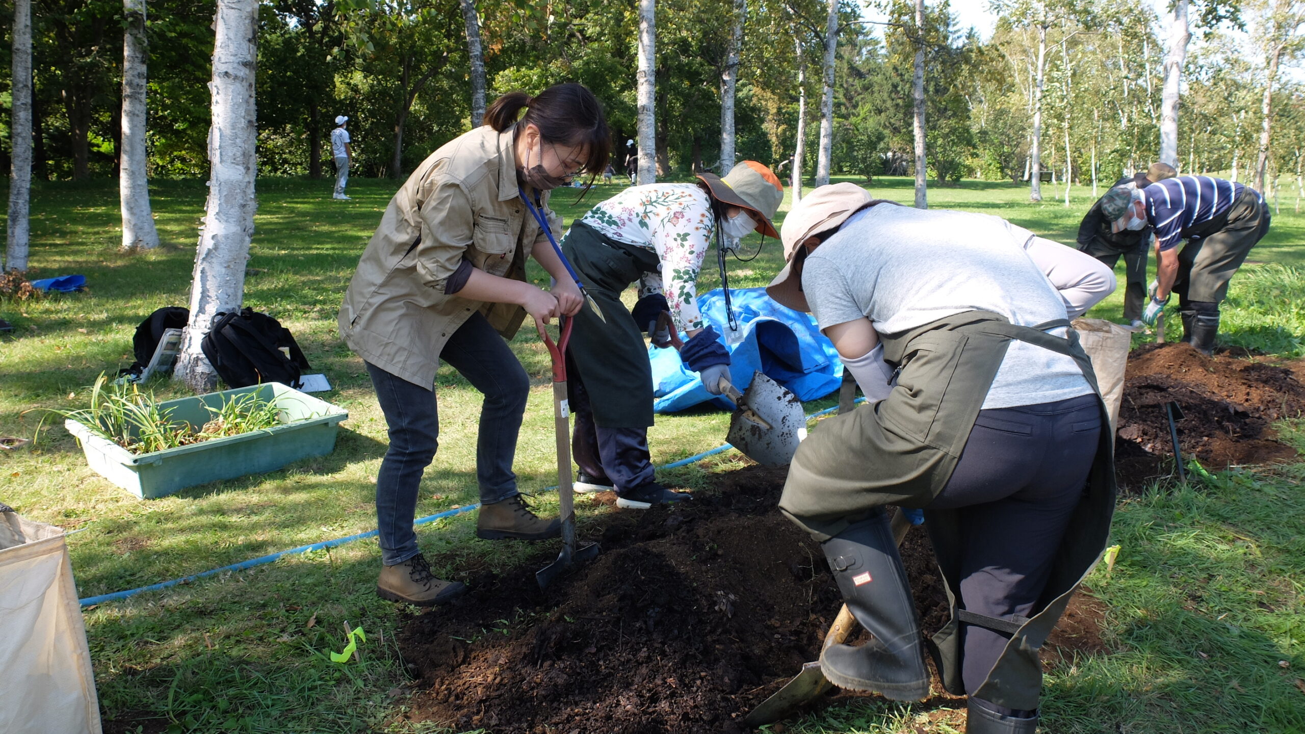 2022年10月1日(土曜日)、第13回目となる「宿根草の管理」の実習を百合が原公園で行い、講師は百合が原公園職員の原さんが務めました。