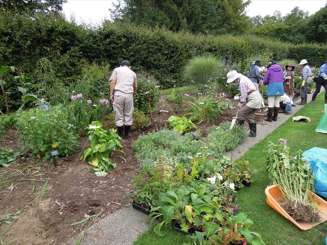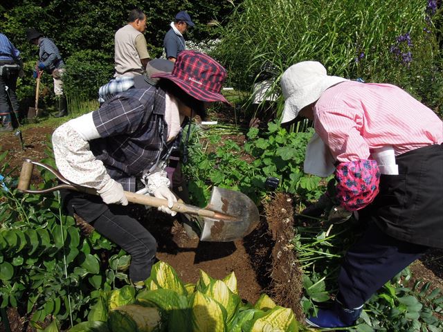 今回は「宿根草の株分け」ということで、全身をつかっての作業になりました。