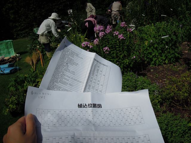 植え込み先、対象宿根草は、こちらの「植込位置図」と「植物リスト」を見ながら。