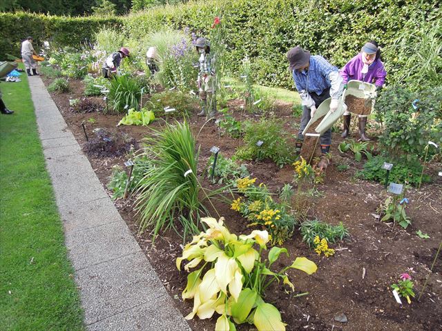 午後からは、新しく用意した宿根草の苗も植え込み、へこんだ部分に土をかぶせて、完成!