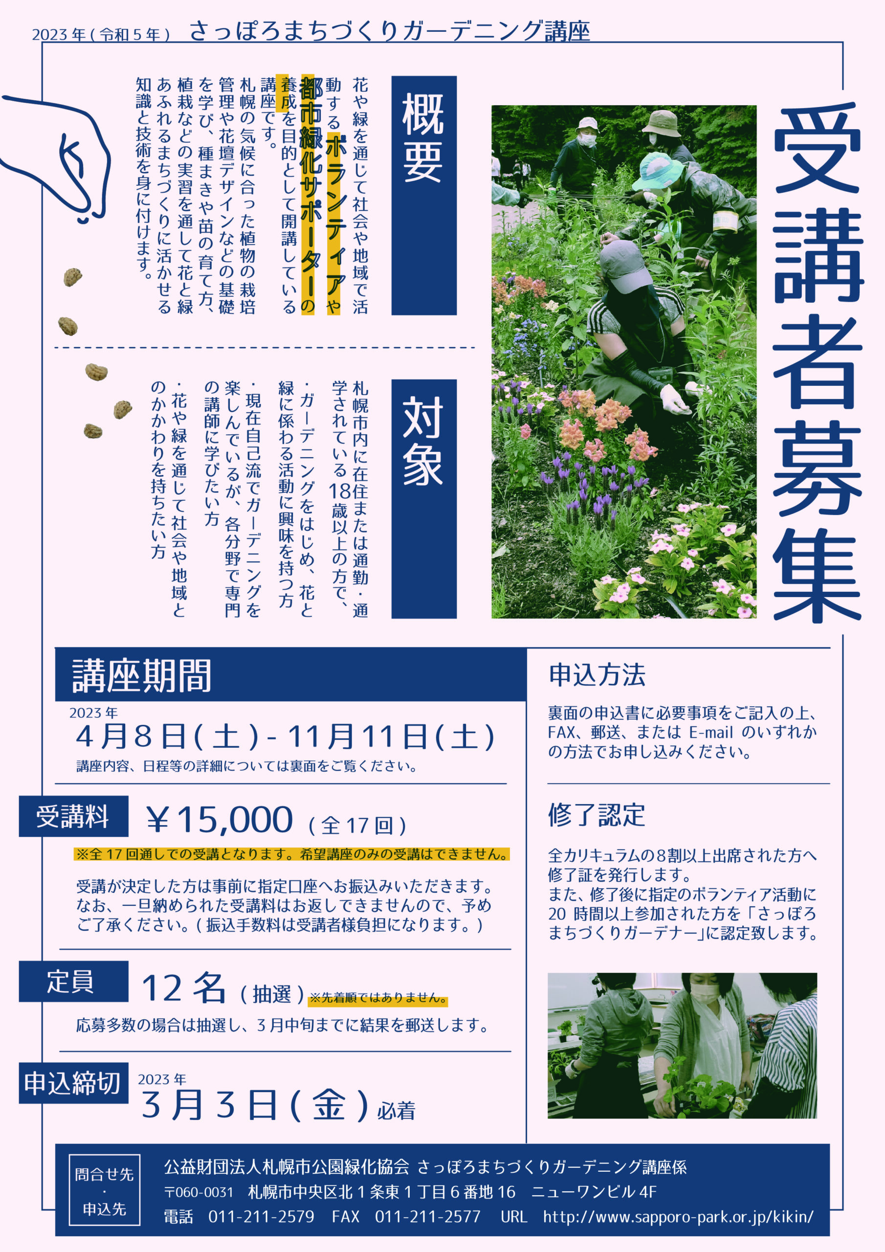 2023年さっぽろまちづくりガーデニング講座募集案内(PDF/440KB)