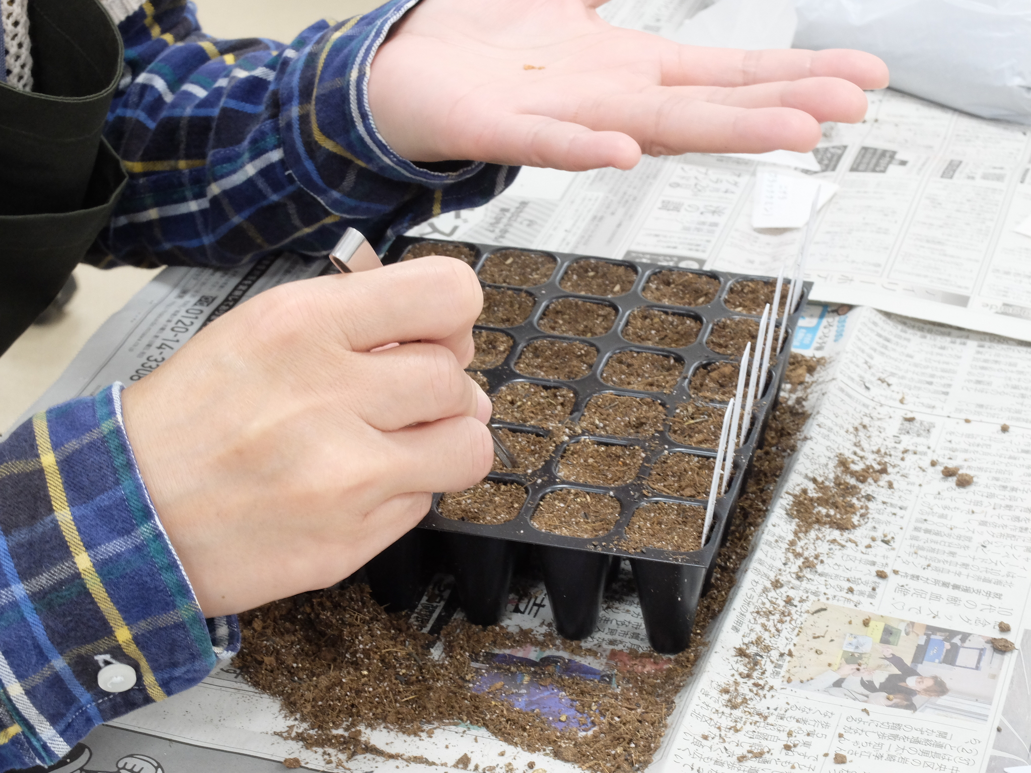 種まきのコツは「あせらず。ゆっくり。ていねいに。」と藤井さんのアドバイスに倣い、皆さんとても丁寧に種まきをされていました。