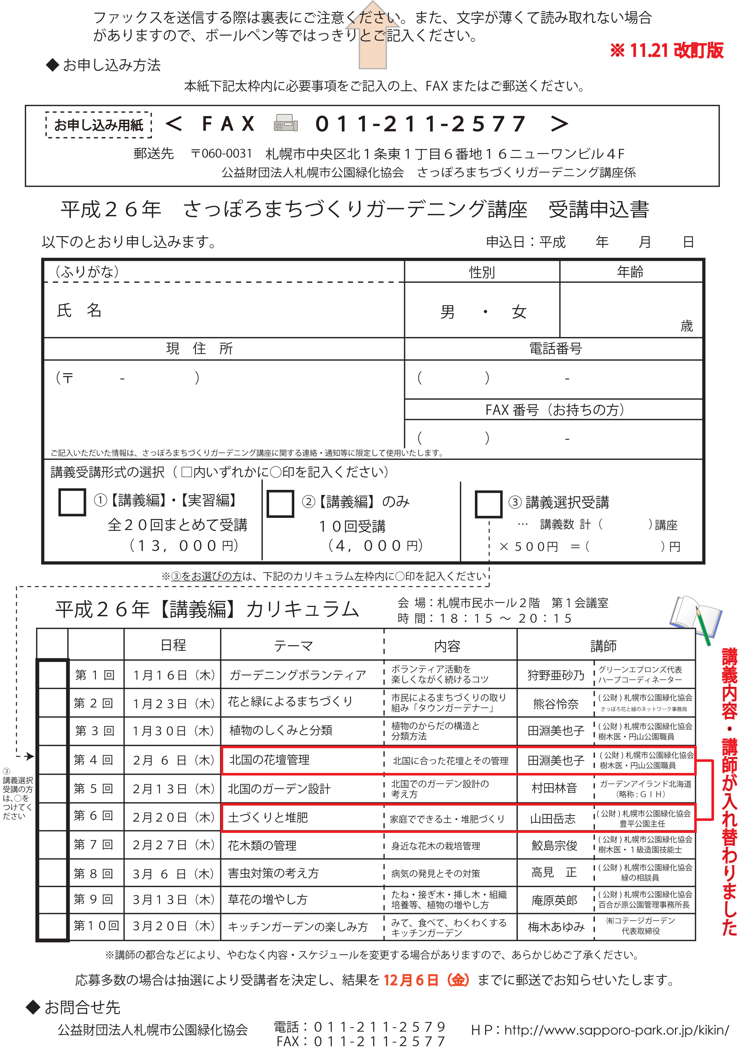 今年の4月から開講しておりました「さっぽろまちづくりガーデニング講座」【実習編】ですが、来年1月より新たな講座が始まります。