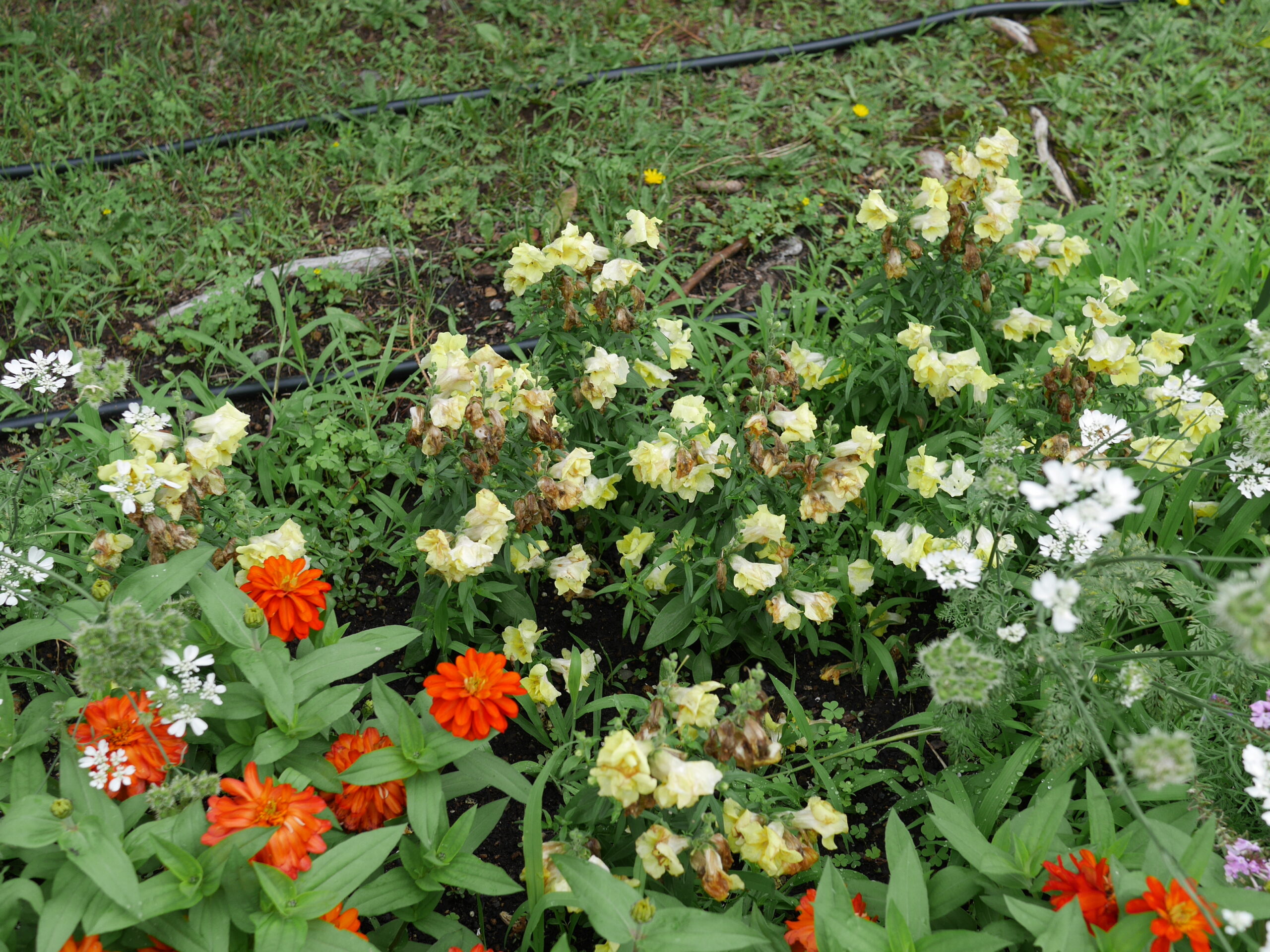 今回のメンテンスではキンギョソウ、レースフラワー、ジニアの花がら摘みや切り戻し、除草を行いました。