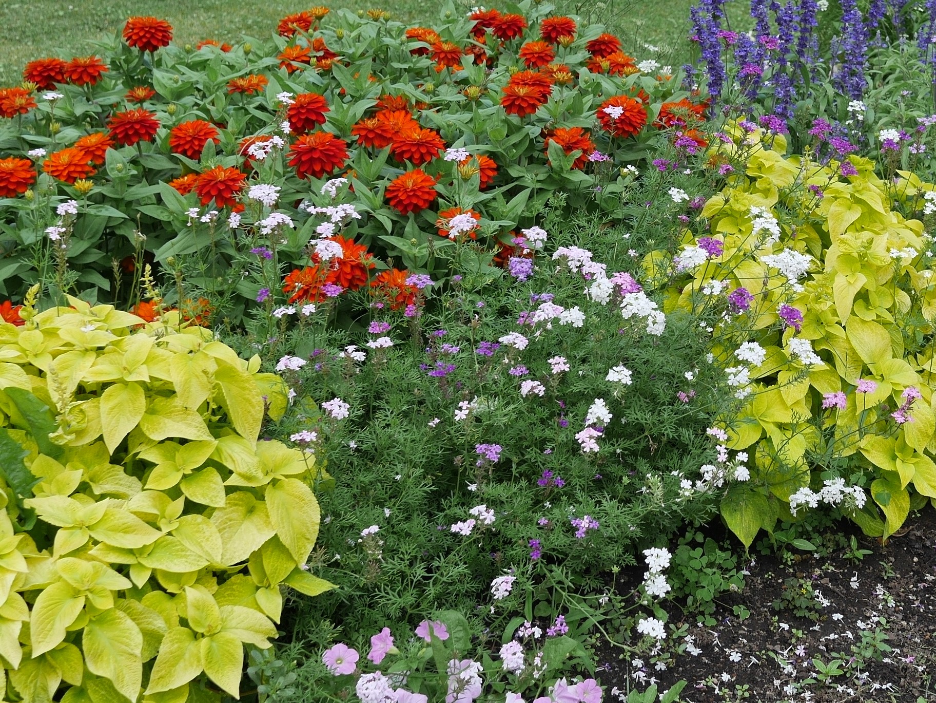 メンテナンス前とメンテナンス後の写真を比べてみると、コリウスのボリュームが抑えられ、周りの花々が良く見えるようになりました。