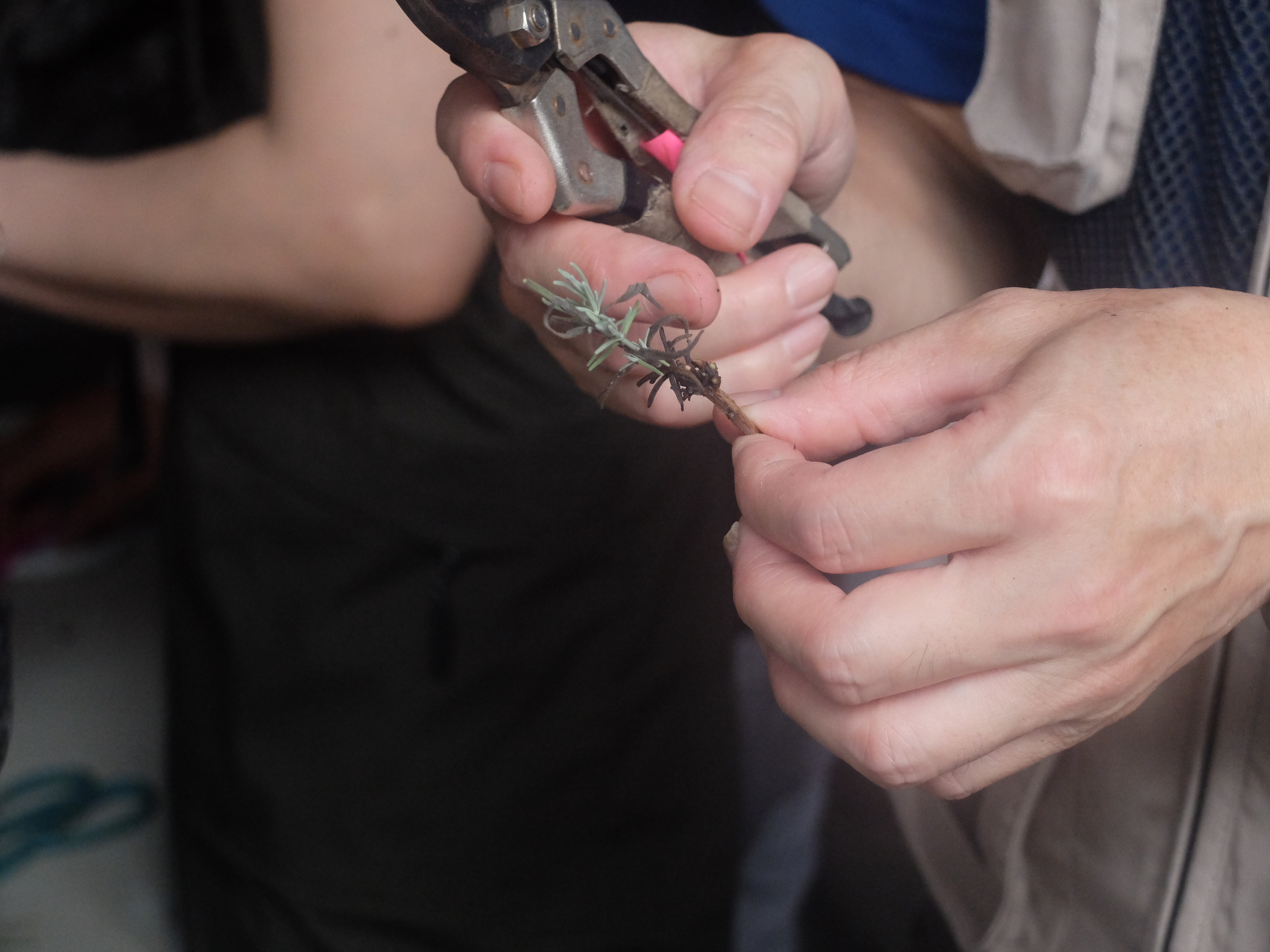 ラベンダーの剪定に適した時期やなぜ剪定するのか、どこを剪定したら良いのか、また、ふやす方法の1つの「挿し木」について必要な道具や手順、挿し穂の採取方法などを学びました。