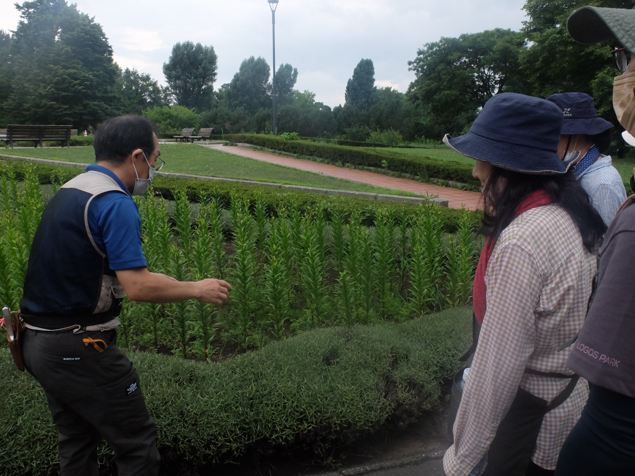 このあと公園内の星形花壇に移動して、すでに剪定が終わっているラベンダーを見学しました。
