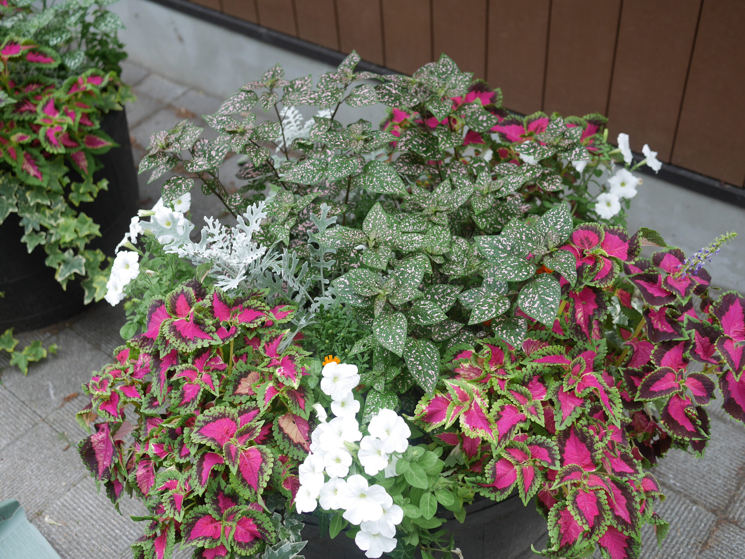 10月の植え替え時期までコンテナガーデンを楽しめるよう、伸びすぎている葉を整える程度の剪定と、ペチュニアの花がら摘みをしました。