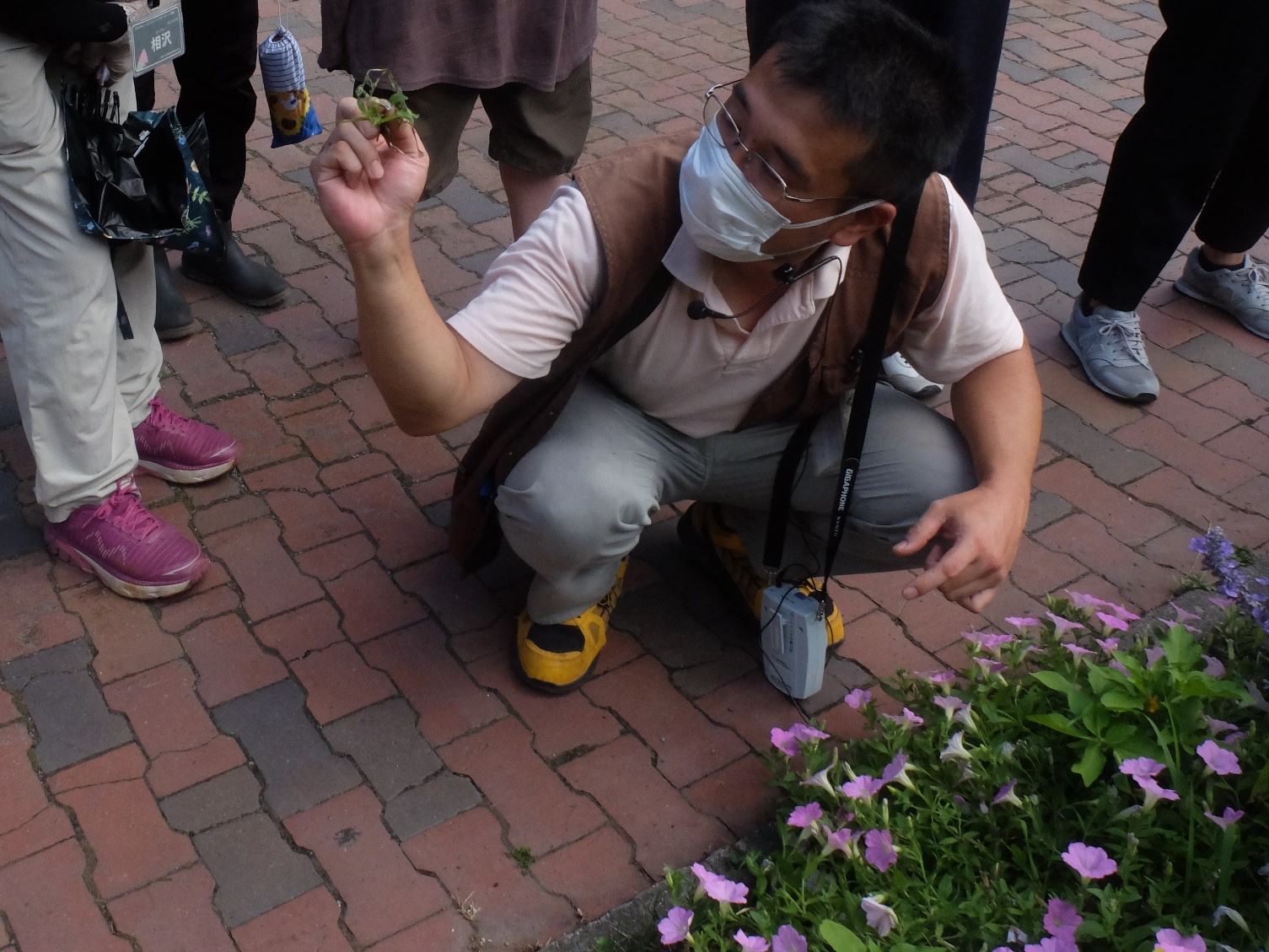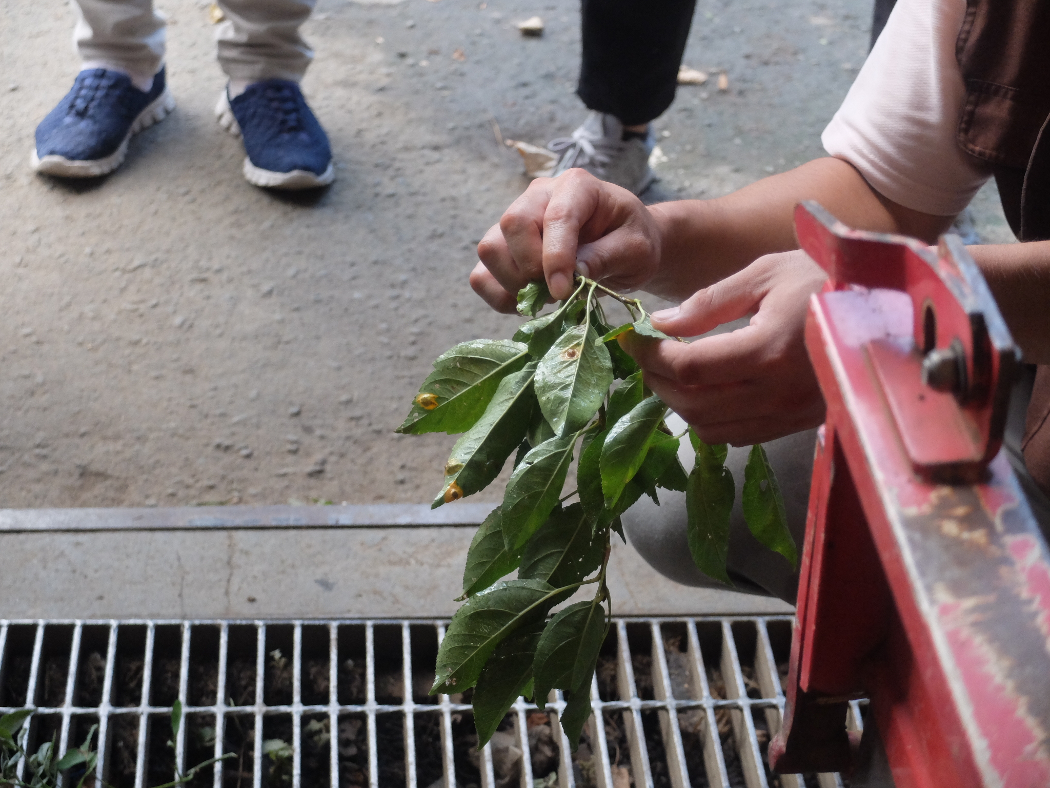 倉庫に移動して園内で採取した病害虫被害の植物を観察したあと、園内を散策しながら実際の病害虫被害を見学しました。