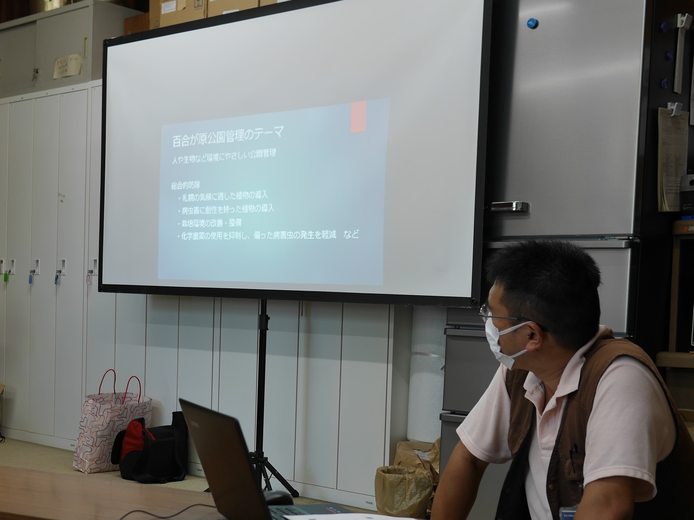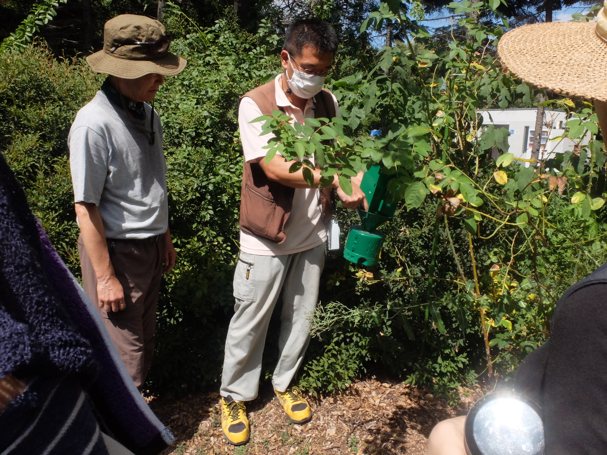 2023年8月26日(土曜日)、令和5年さっぽろまちづくりガーデニング講座の第12回目「病害虫対策の考え方」の実習を百合が原公園を会場に行いました。講師は当協会職員で百合が原公園主任の佐々木博一が担当しました。