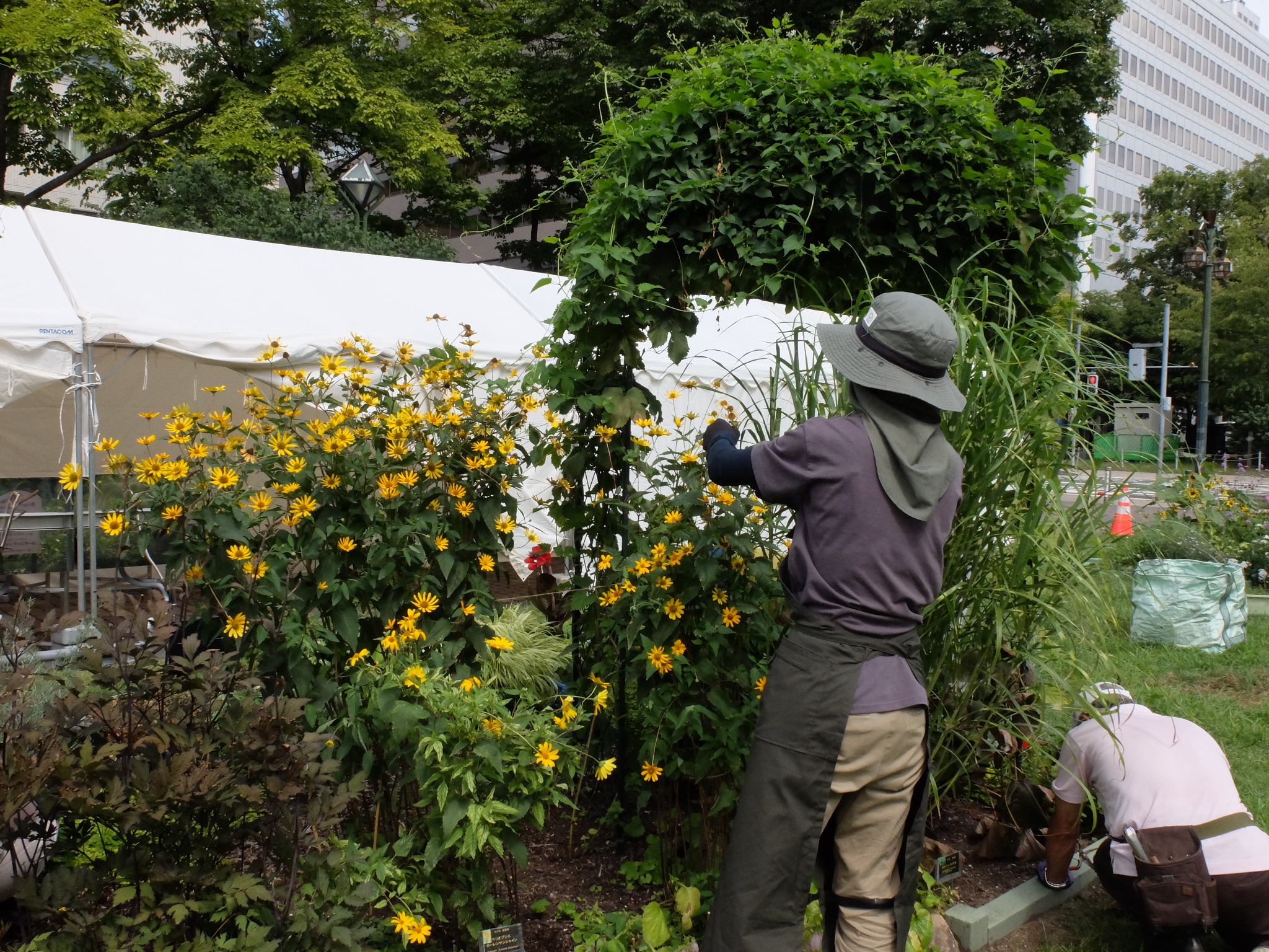 西8丁目花壇の2面は、札幌市と‘さっぽろまちづくりパートナー協定’を締結しているスポンサー企業の象徴であるビールの原料ホップをアーチ仕立てにしています。