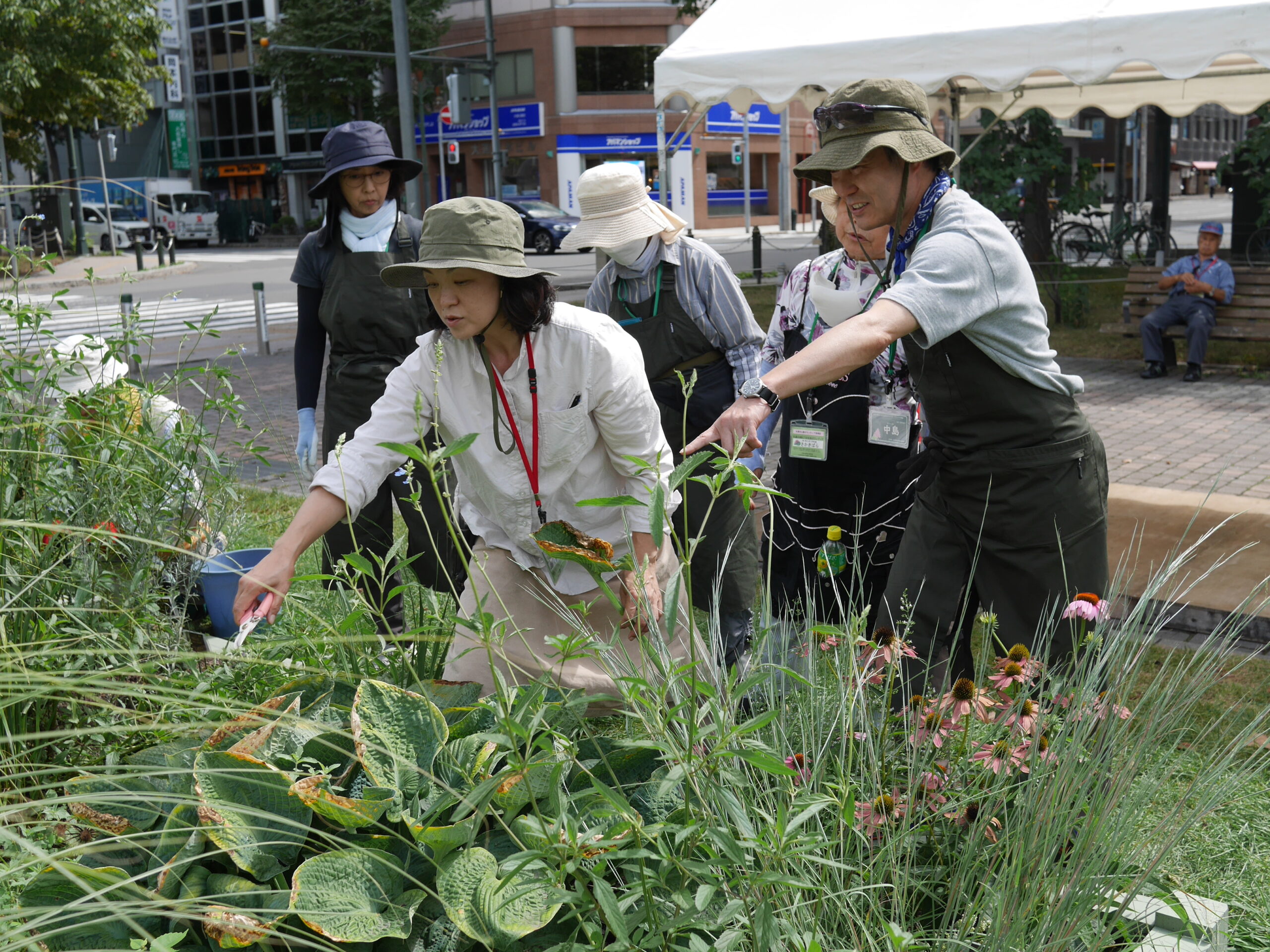 今回は主に大通公園西8丁目花壇の植栽管理をしている「大通班」の皆さんに自分たちの活動のお話のほか、活動場所の西8丁目花壇でメンテナンスを学びました。