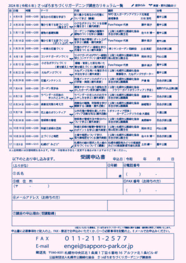 【受講者募集】2024年(令和6年)さっぽろまちづくりガーデニング講座 受講者を募集します!