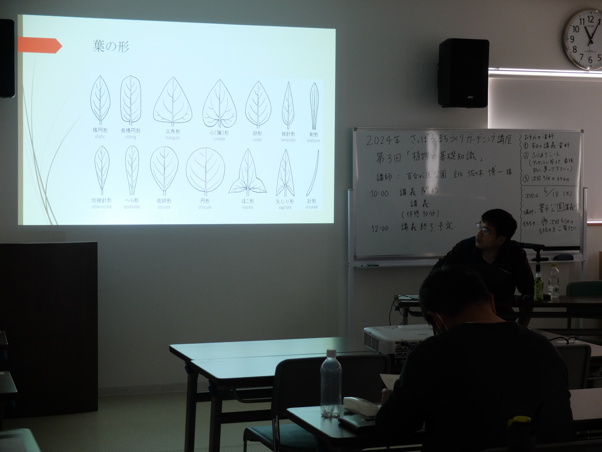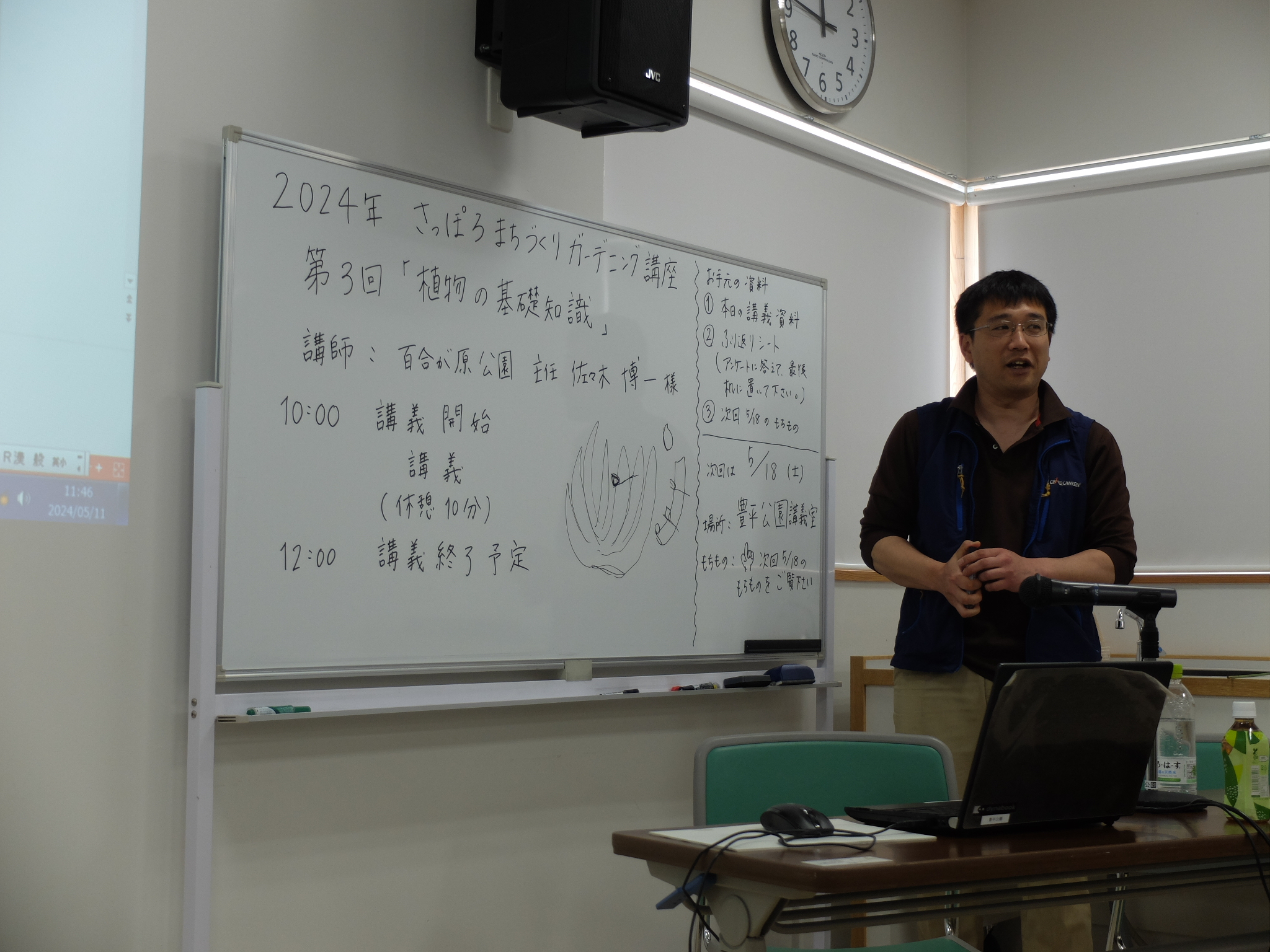 2024年5月11日土曜日、令和6年さっぽろまちづくりガーデニング講座第3回目の「植物の基礎知識」の講義を豊平公園講義室で行いました。