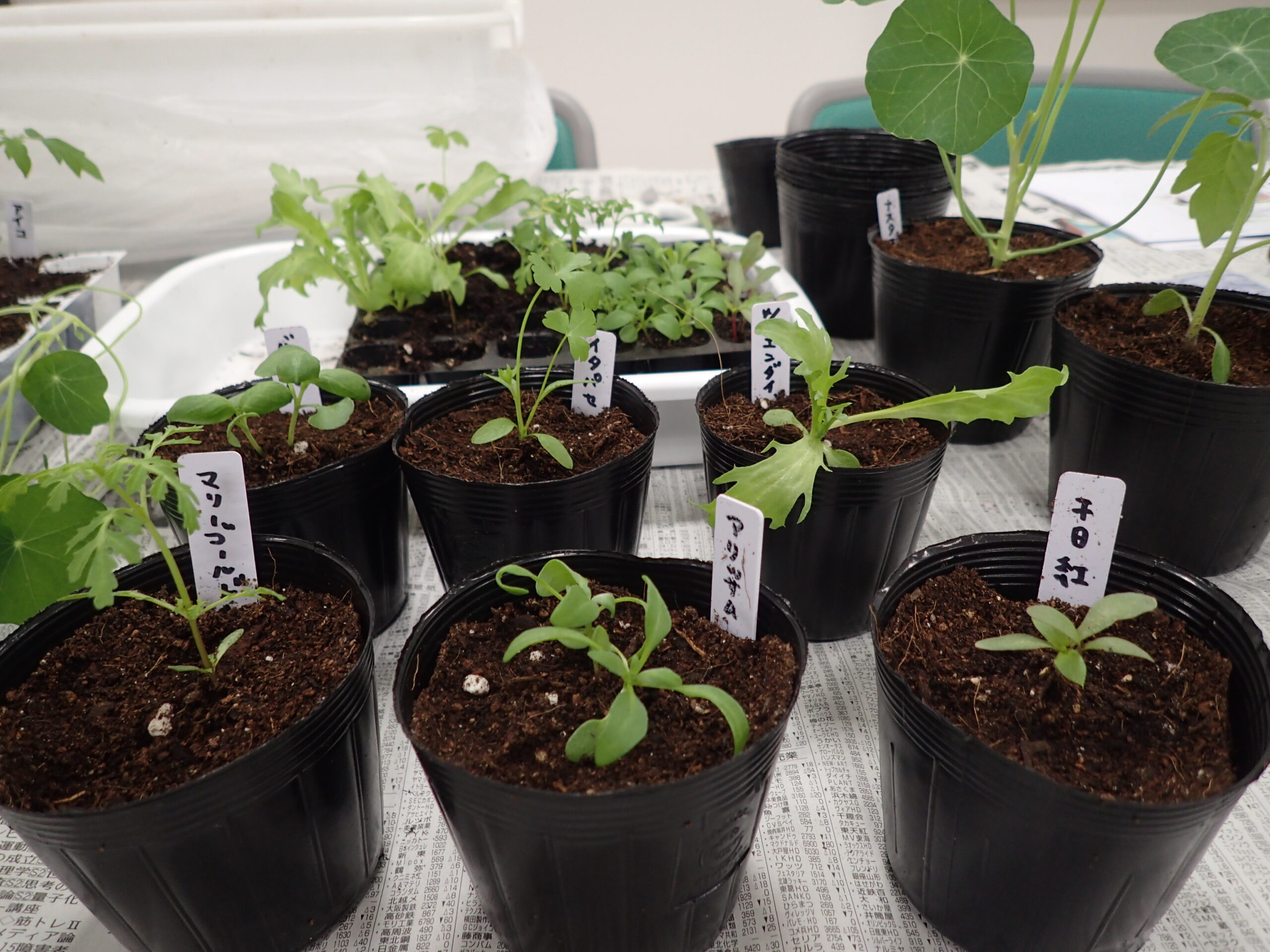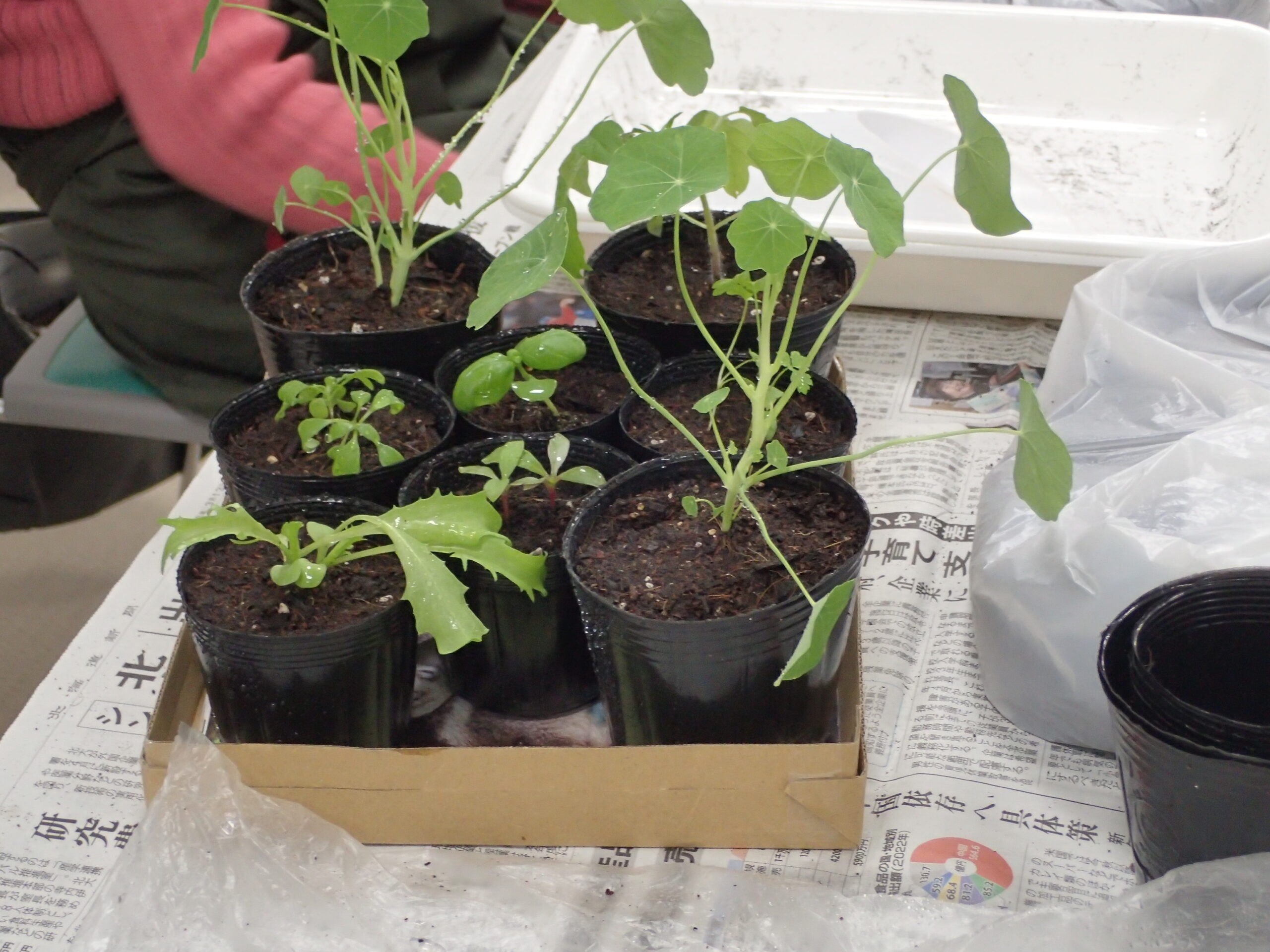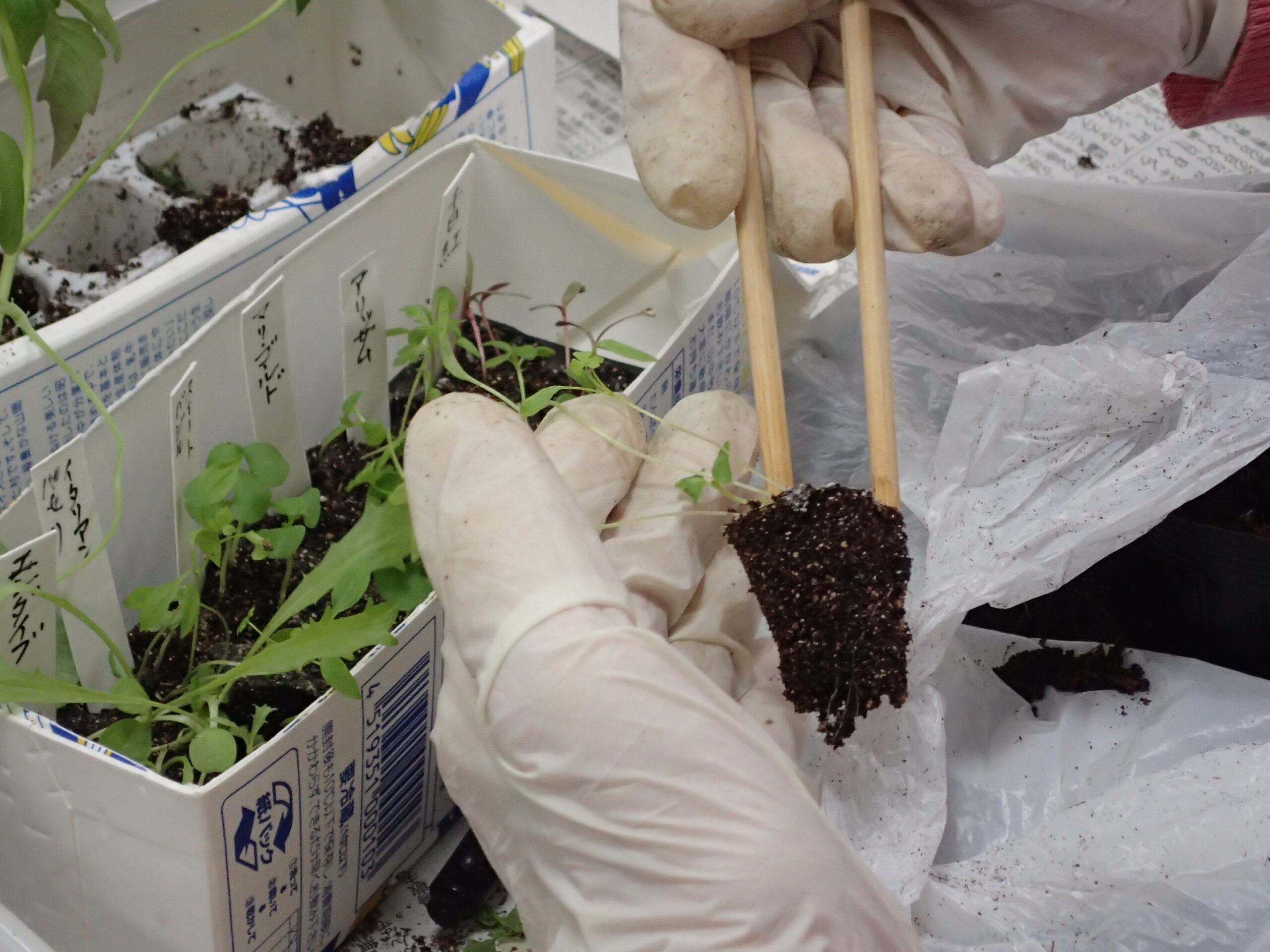 今回の実習は、4月にセルトレイに種をまき、ご自宅で育てた苗を大きくするためのポット上げの実習です。